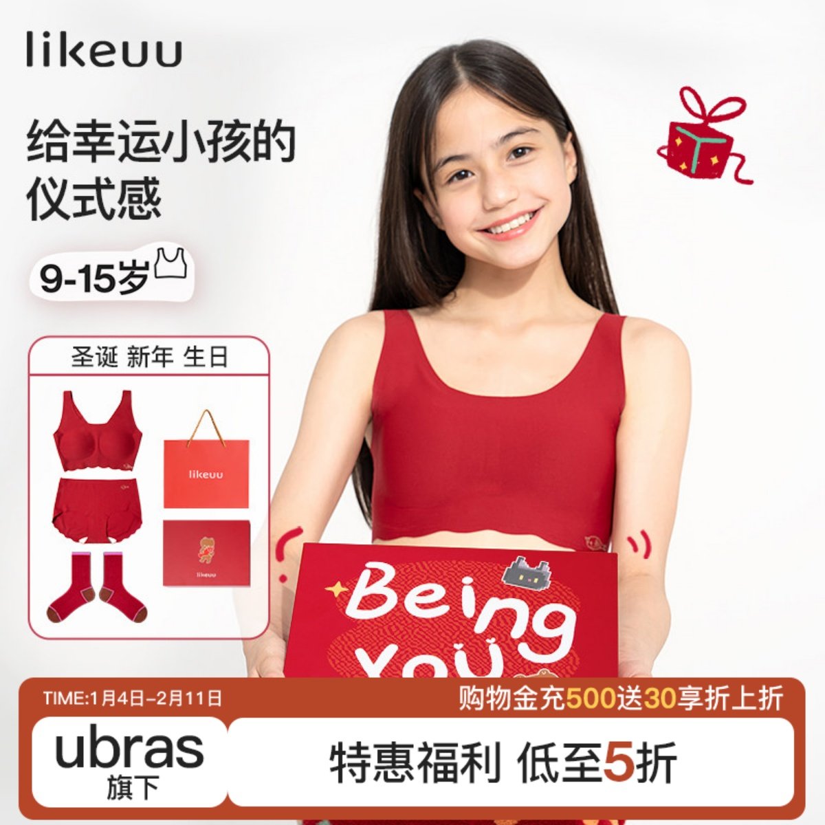 📚 ubras旗下likeuu联名带娃礼盒红色发育期女童内衣中学生小学生