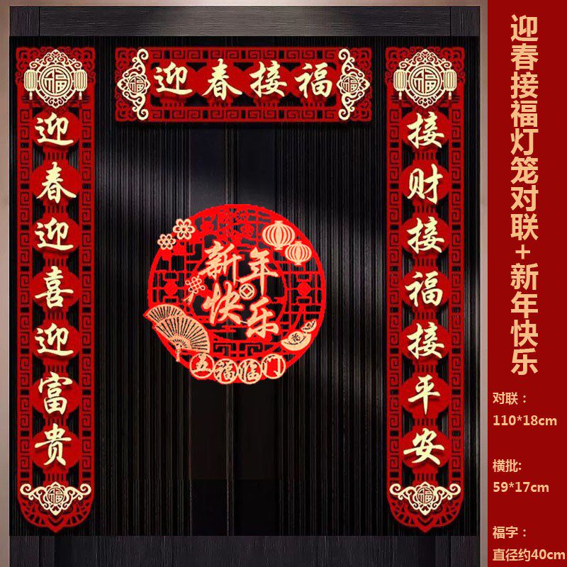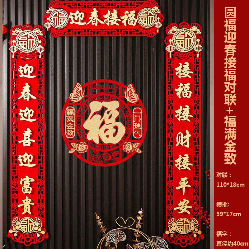 📚 2024龙年植绒春节新年对联春联布置入户门贴大门装饰绒布福字