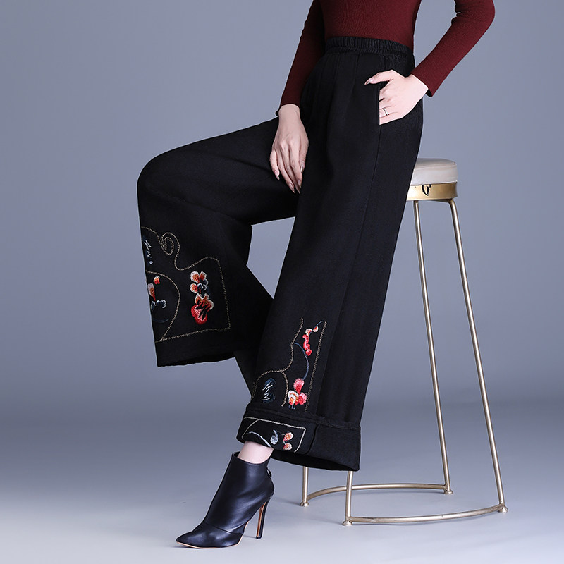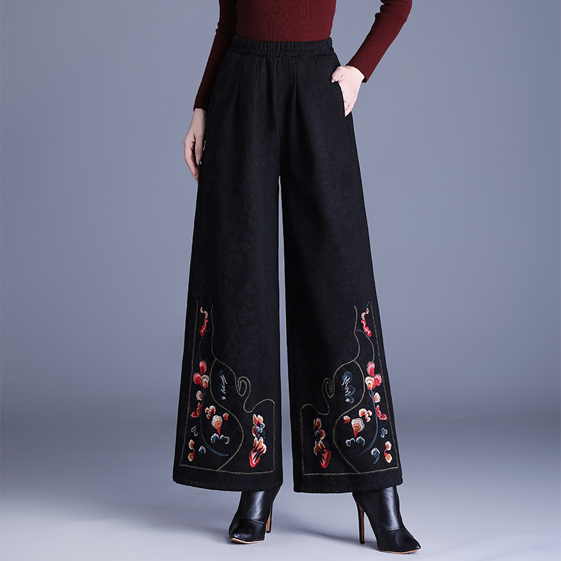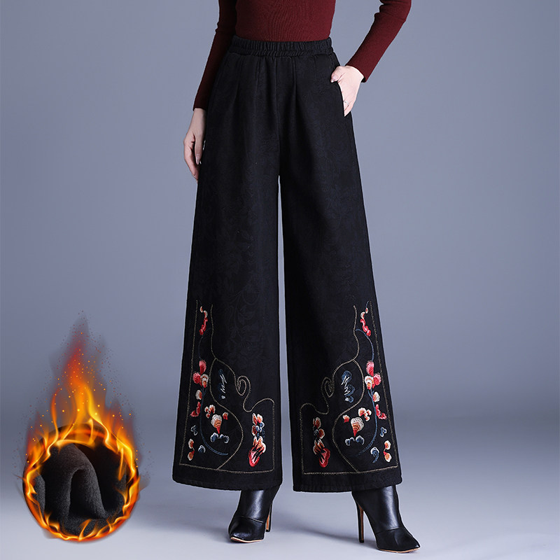 📚 加绒加厚绣花裤子女冬季直筒阔腿裤2026新款女装新中式国风后妈裤