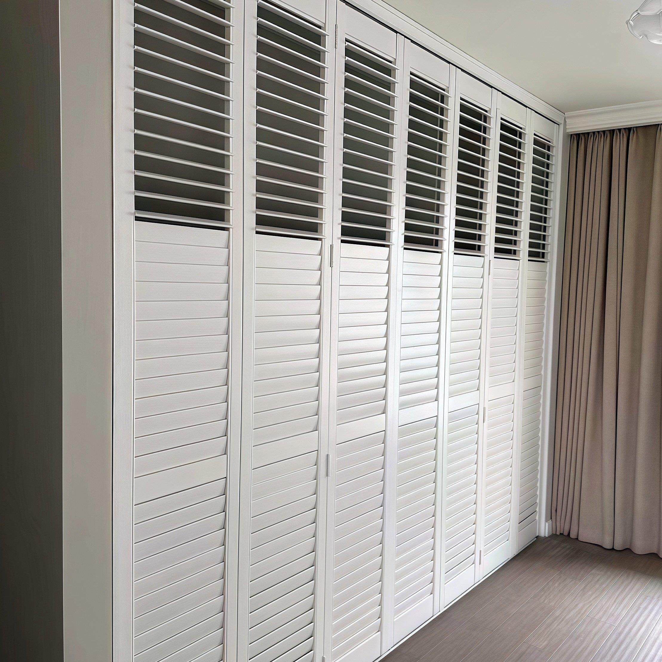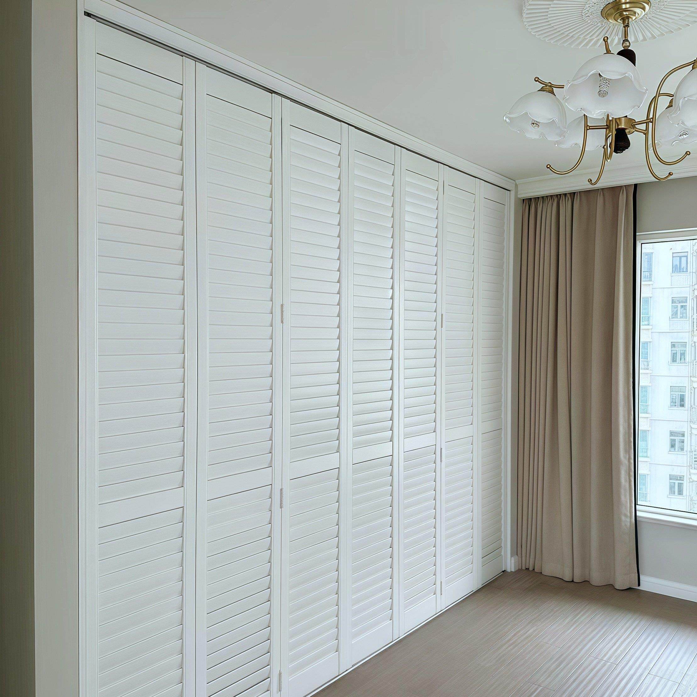 📚 实木百叶折叠衣柜门收纳衣帽间储物卧室柜门欧式隔断推拉百叶门窗