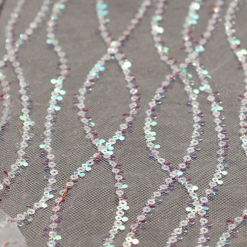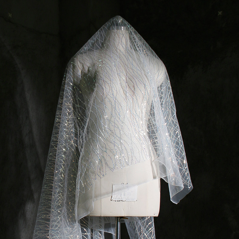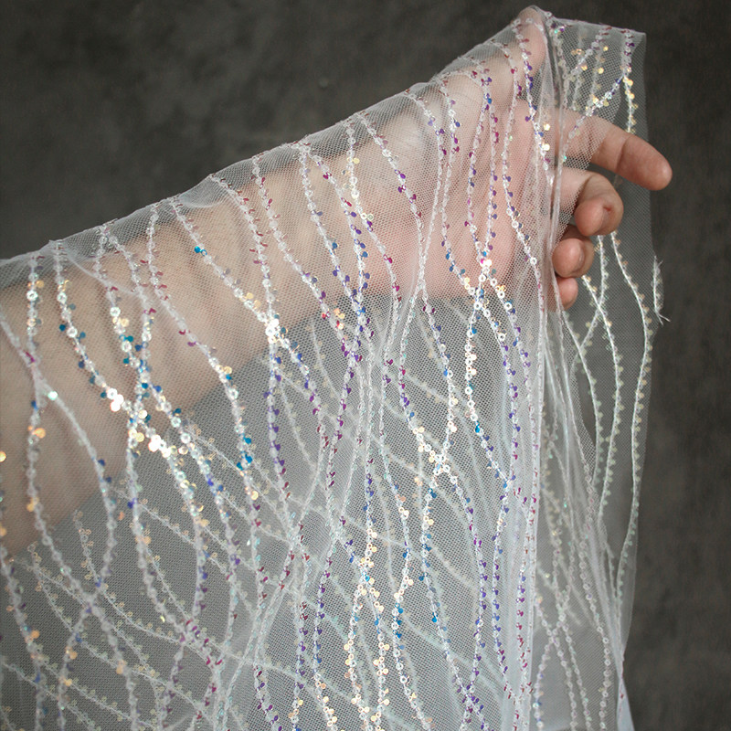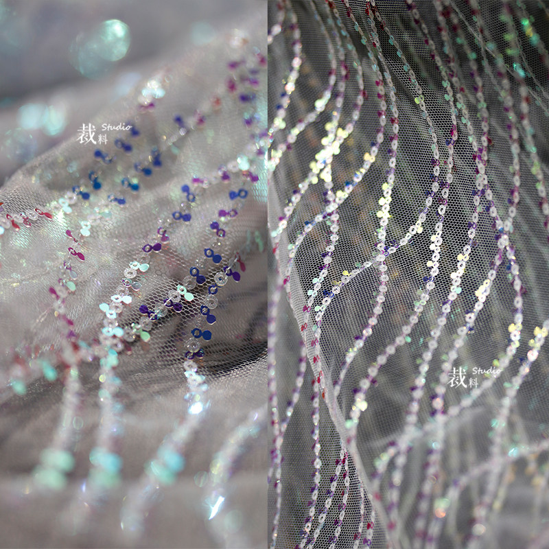 📚 人鱼波浪纱原创幻彩透视鱼鳞小亮片网纱布料童装礼服装门窗帘面料