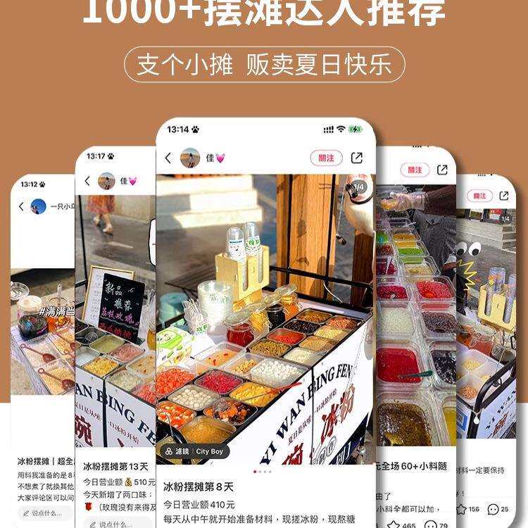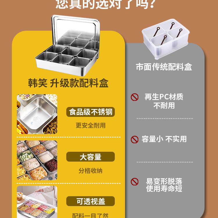 📚 冰粉配料盒商用摆摊专用不锈钢分格收纳麻糍调料小料盒子工具全套