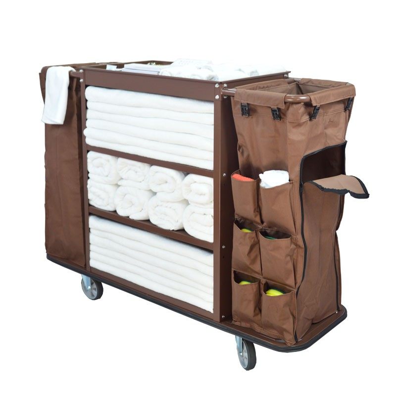 📚 酒店布草车客房服务车清洁车双边房口车手推车宾馆工作车保洁推车