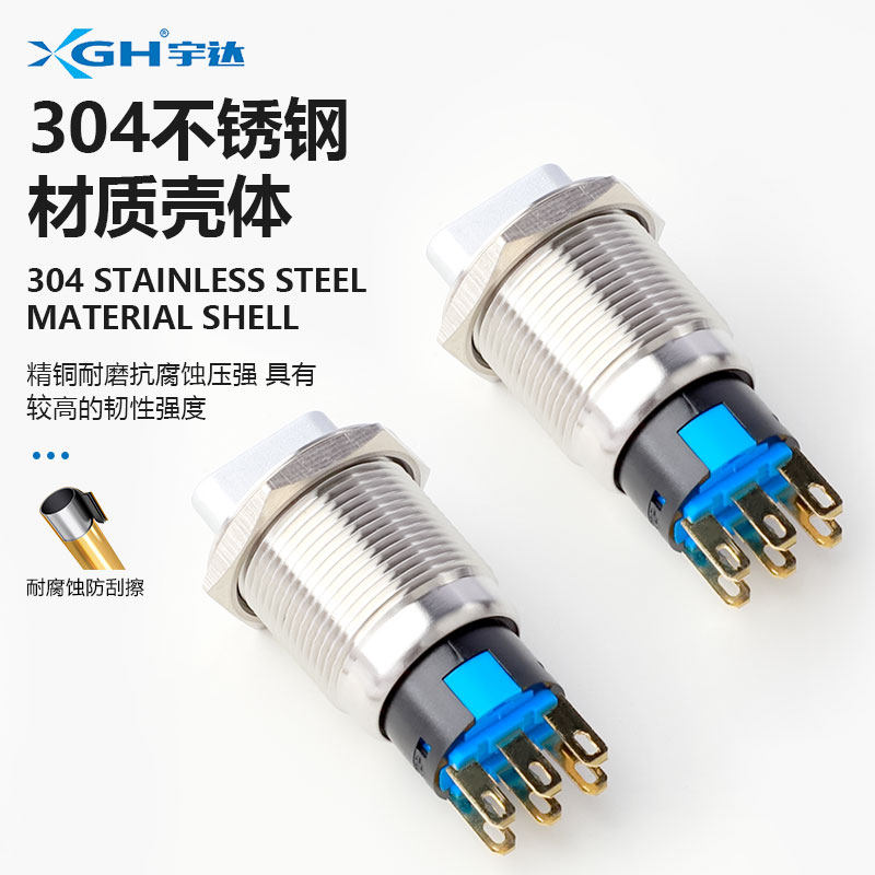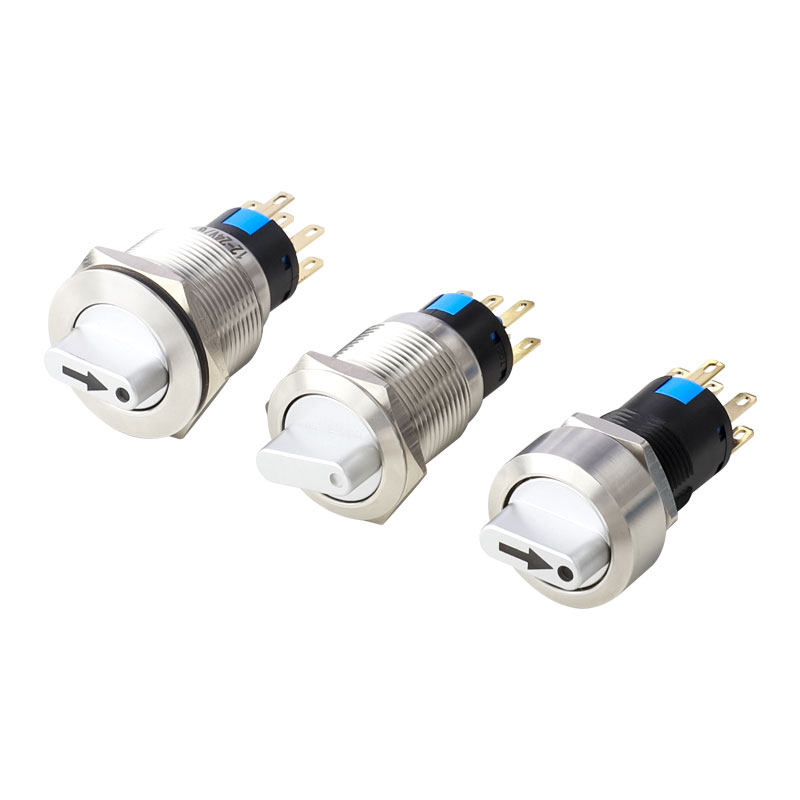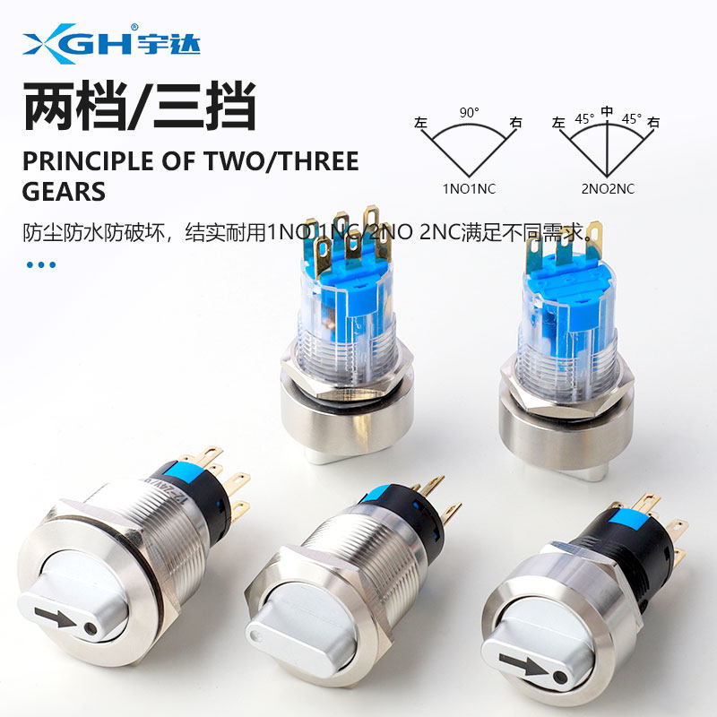 📚 16/19/22mm金属旋转开关二档自锁 带指示灯自复位旋钮三档 不锈钢
