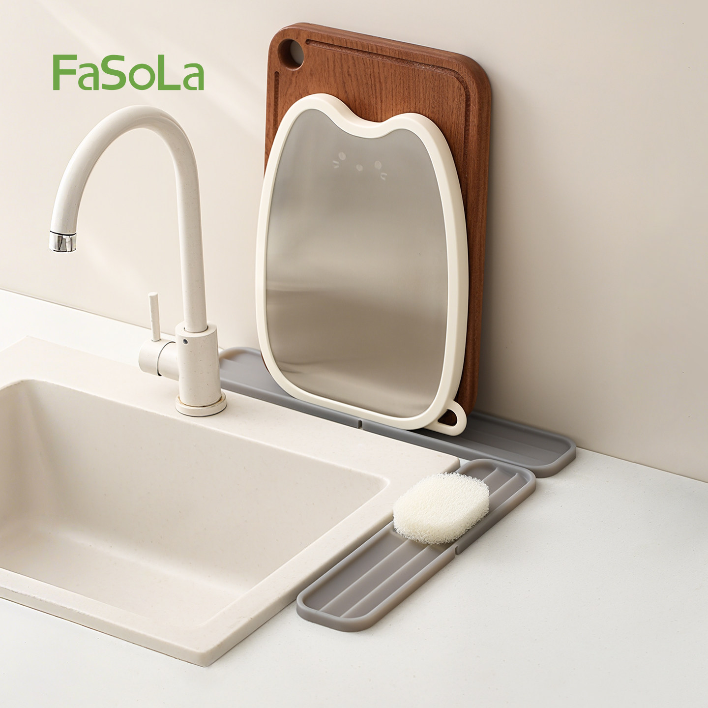 📚 FaSoLa窄缝锅盖收纳垫阶梯沥水砧板控水灶台防滑多功能台面放置垫