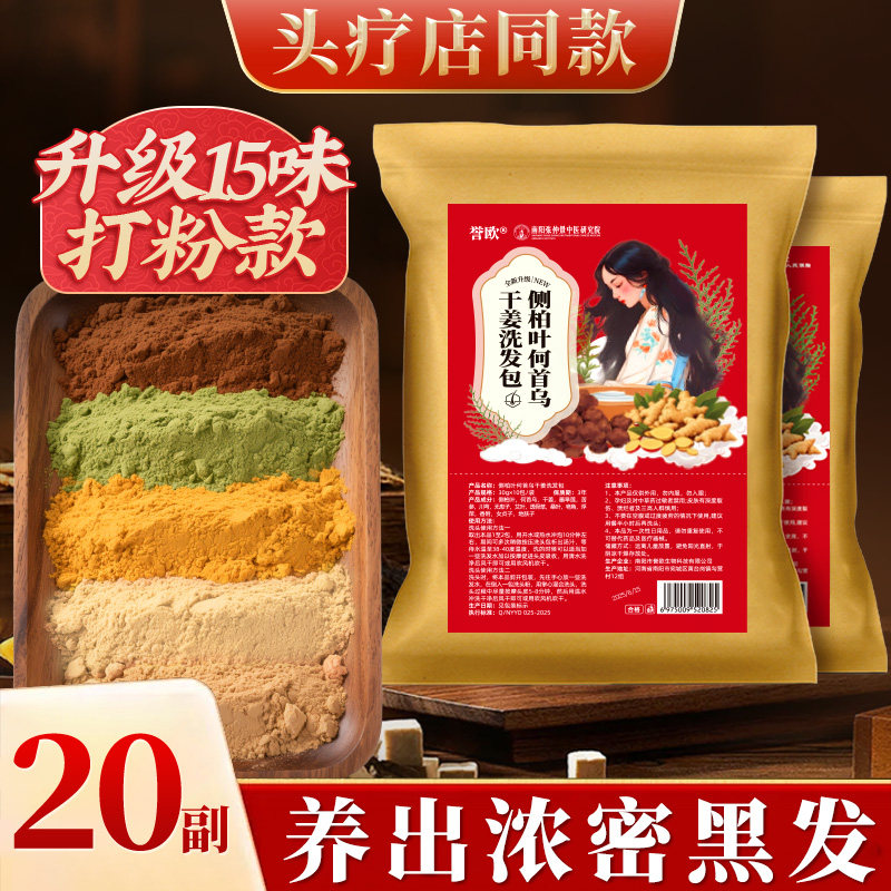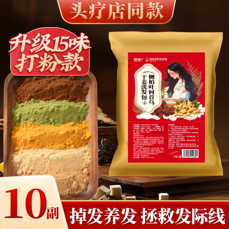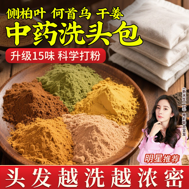 📚 侧柏叶无患子中药材洗发水何首乌茶枯洗头包粉皂角生姜育防养发脱