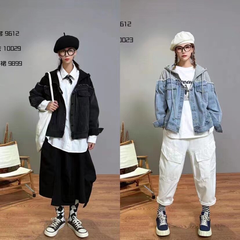 📚 三公主初唯瓦萨梵秀拼接卫衣牛仔衣链帽牛仔短外套宽松口袋工装