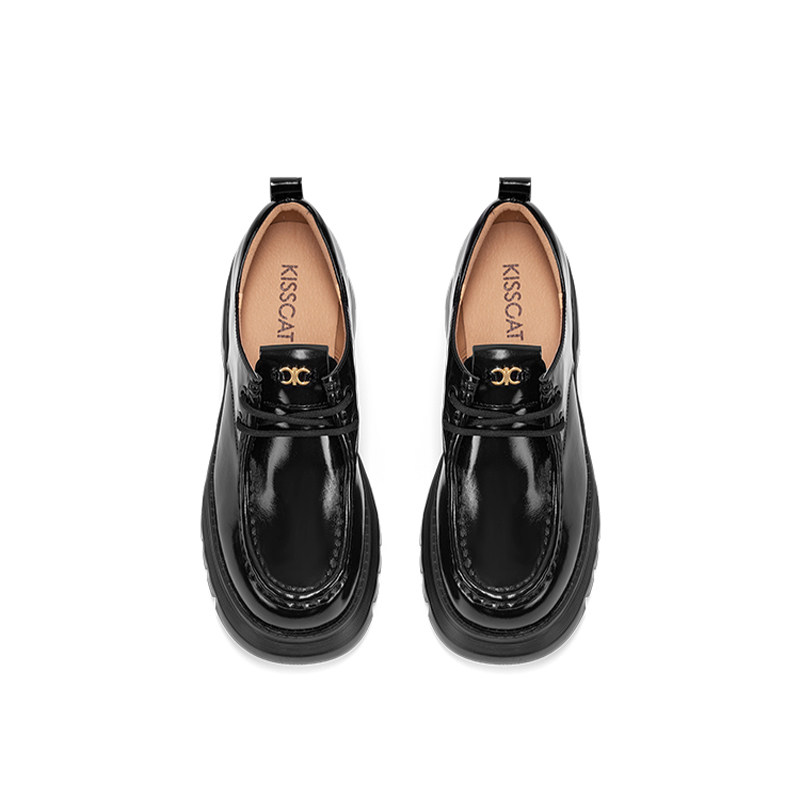 📚 KISS CAT/接吻猫春秋牛皮复古乐福鞋粗跟英伦小皮鞋女KA54580-51