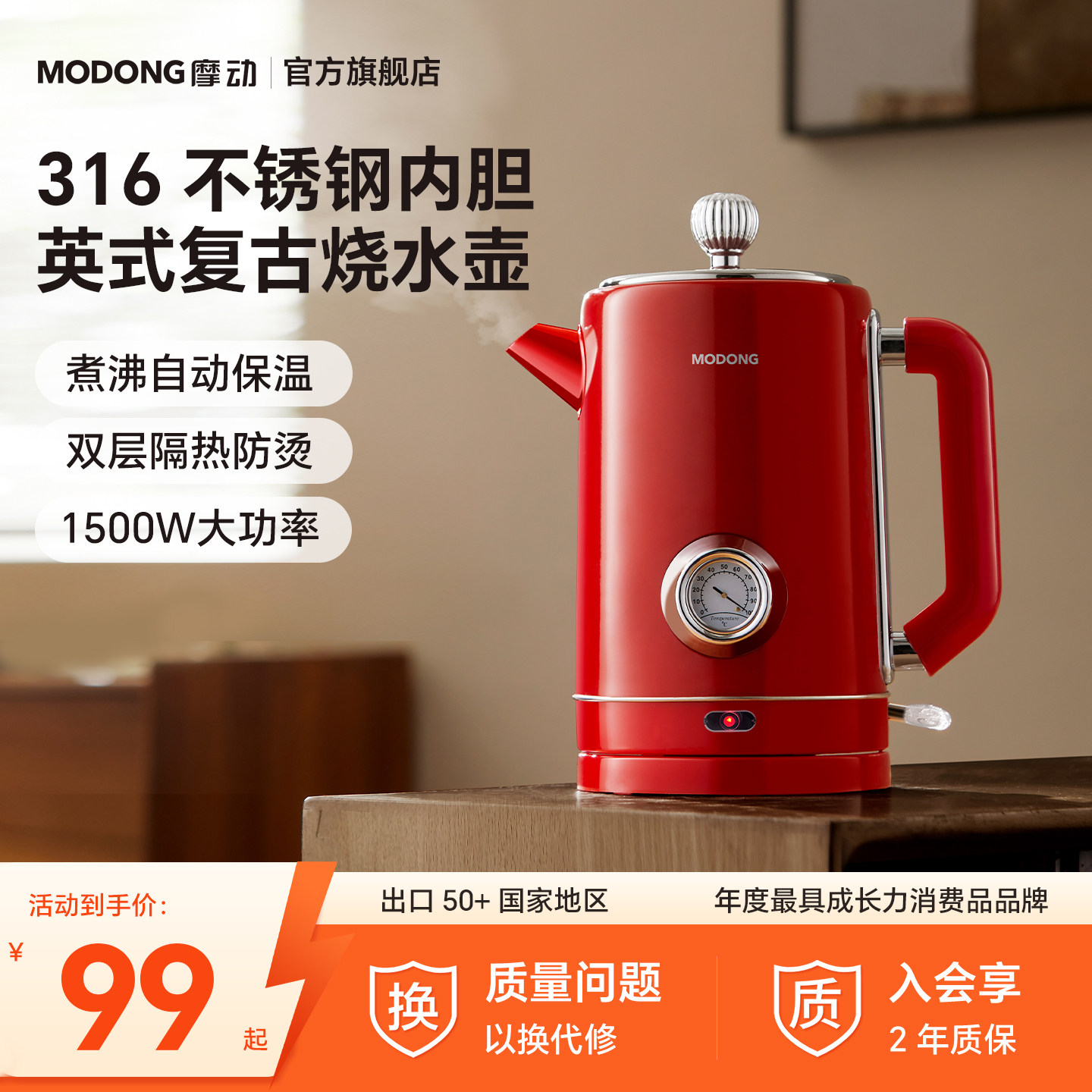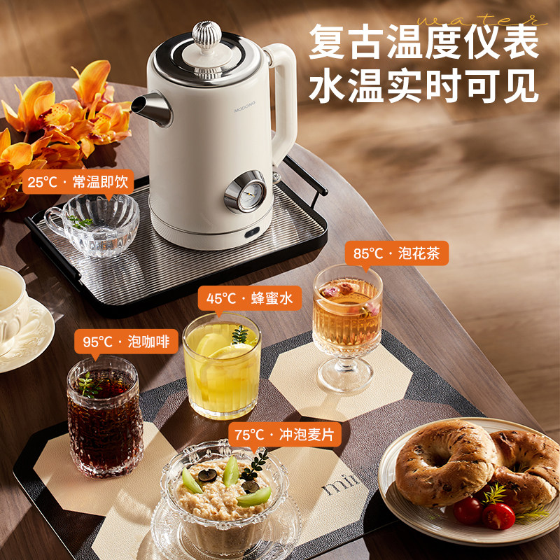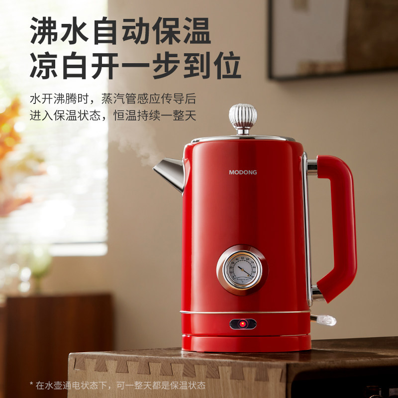 📚 摩动复古电热水壶家用烧水壶304不锈钢保温一体大容量电烧开水壶