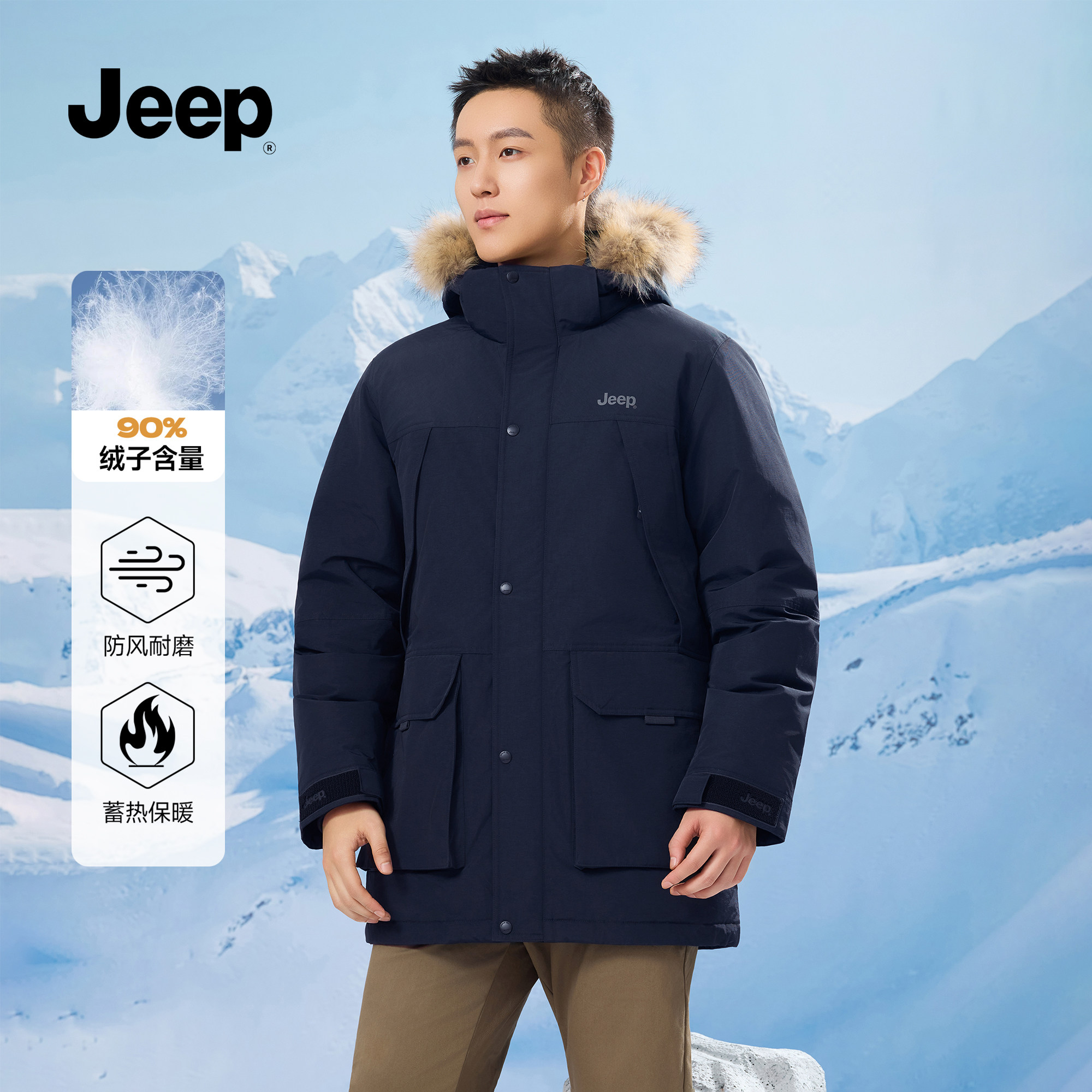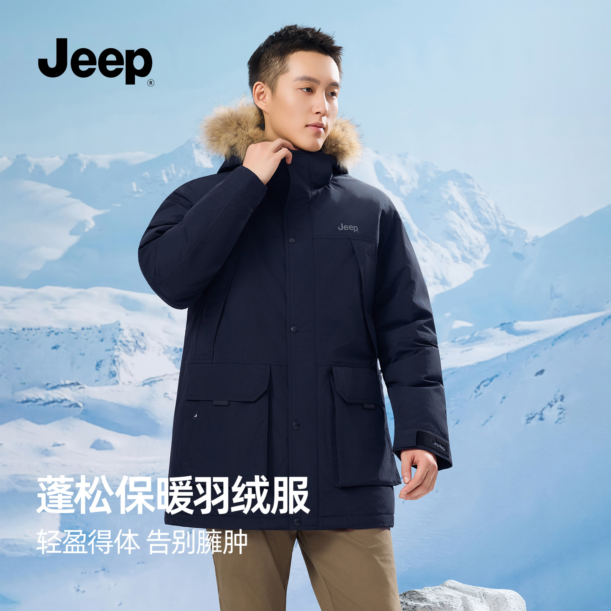 📚 Jeep吉普羽绒服男士冬季毛领防风保暖夹克鸭绒棉服外套派克滑雪服