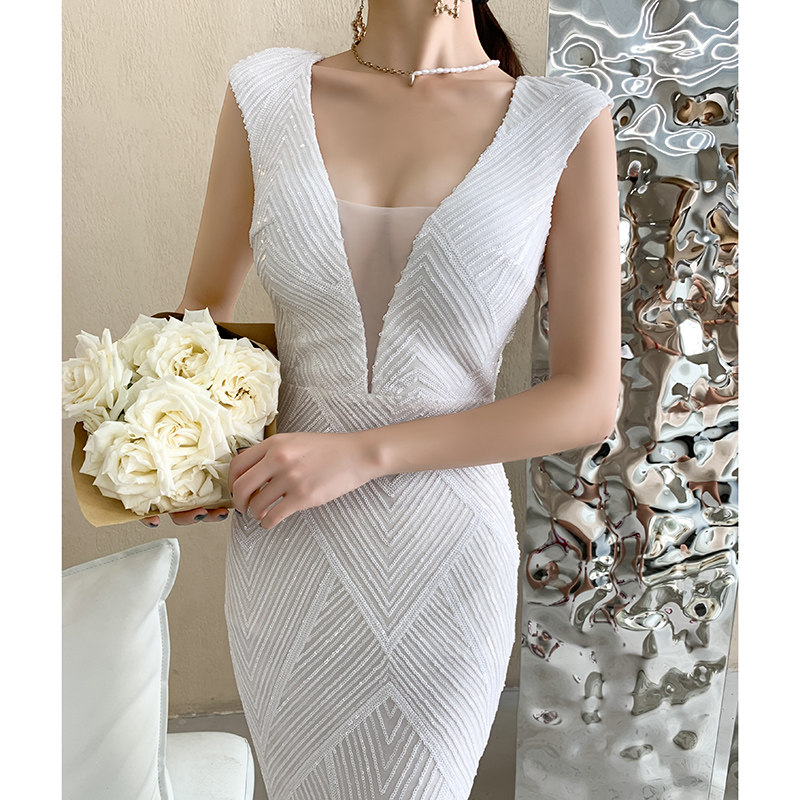 📚 鱼尾晚礼服高级质感2025新款气质高端宴会名媛仙气高贵白色连衣裙