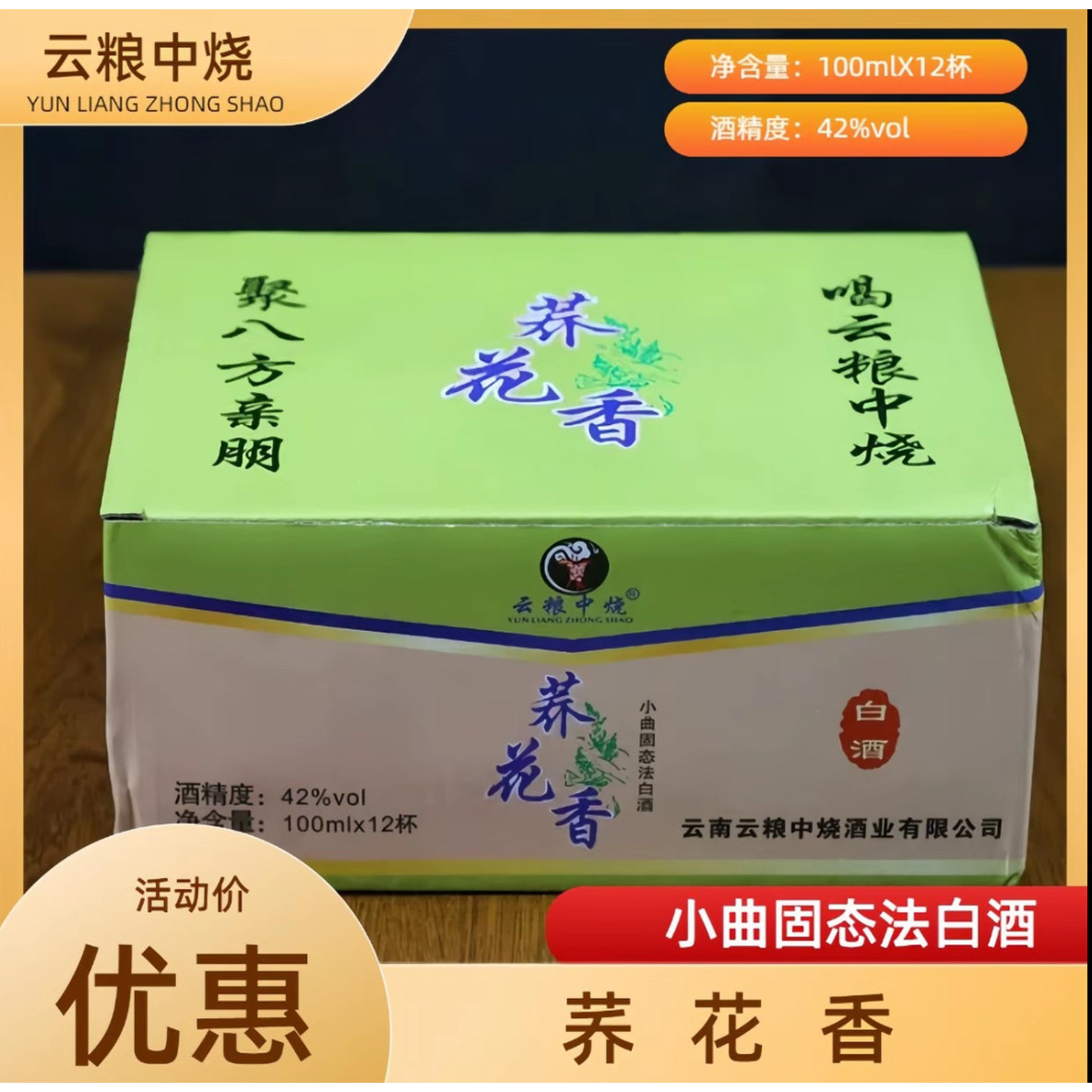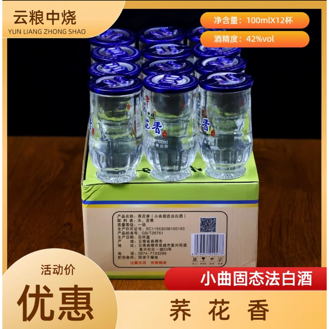 📚 云粮中烧大杯荞花香100ml云南荞麦酒12口杯荞麦白酒清香型42度