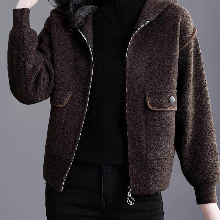 📚 秋冬短款双面毛呢大衣女士春装2025新款小个子春季呢子连帽短外套