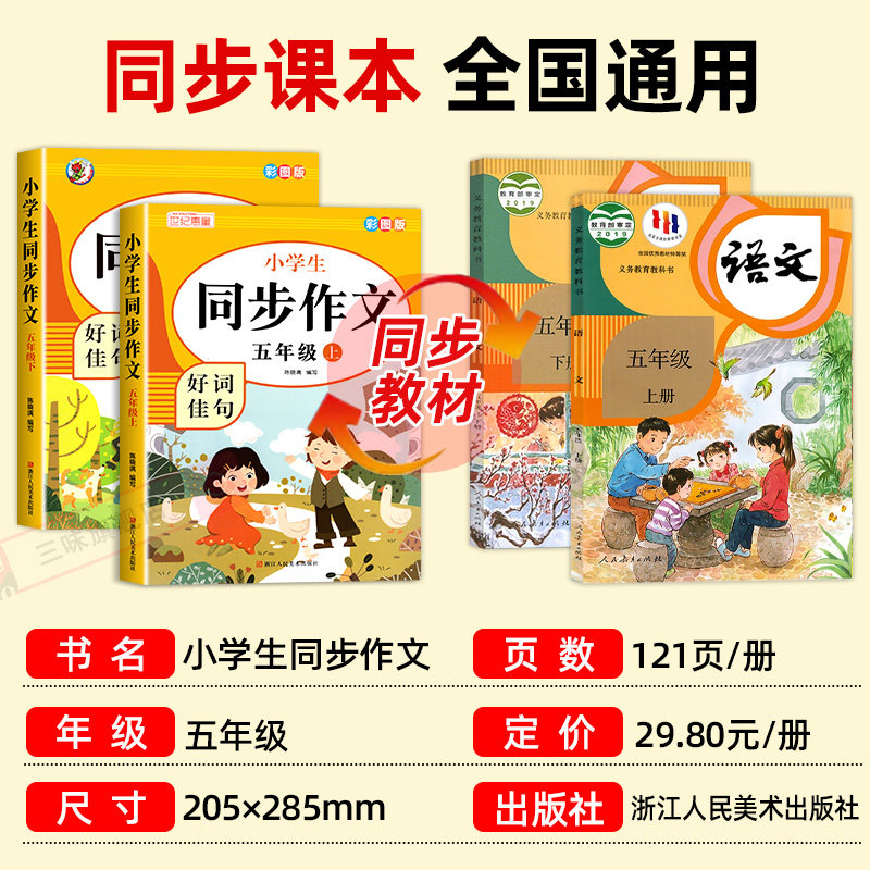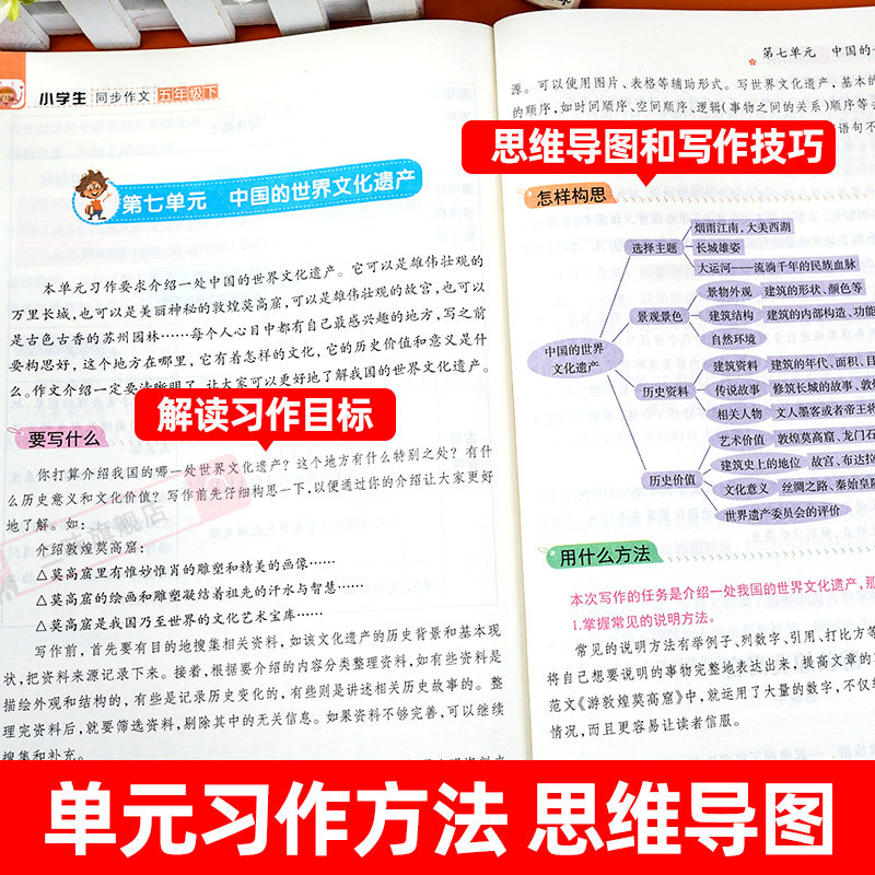 📚 正版五年级下册同步作文人教版小学语文作文书大全小学生优秀作文范文素材思维导图写作技巧黄冈满分52025新版阅读训练课本习作