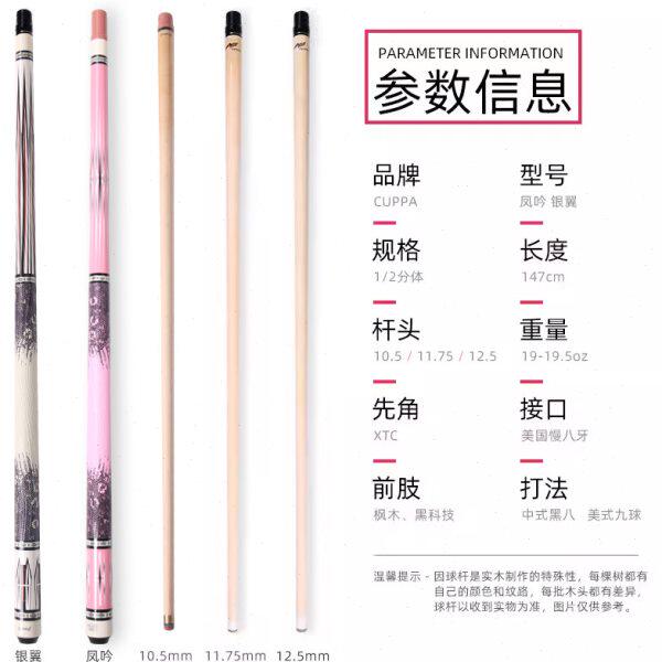 📚 CUPPA凤吟粉色女生专用台球杆小头中式黑八大头桌球杆入门九球杆