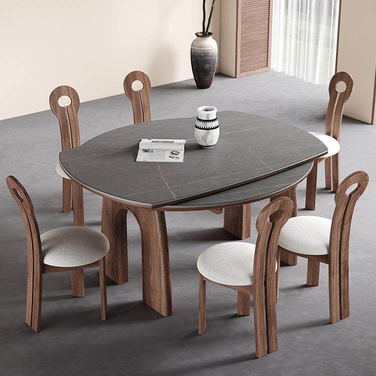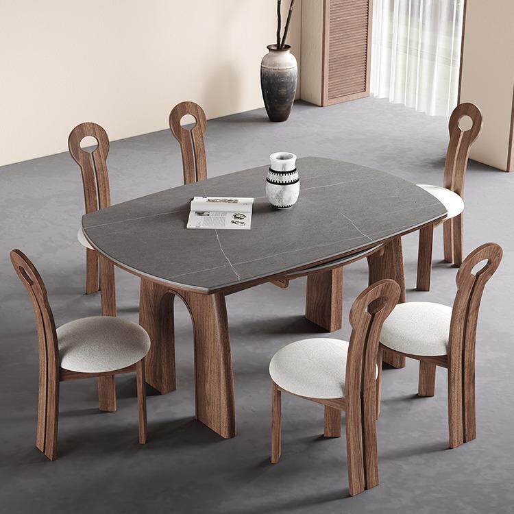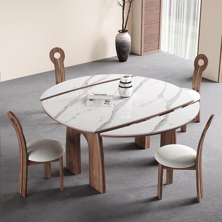 📚 中古风胡桃色实木可伸折叠餐桌法式AKK小户形方可变圆功岩缩能饭
