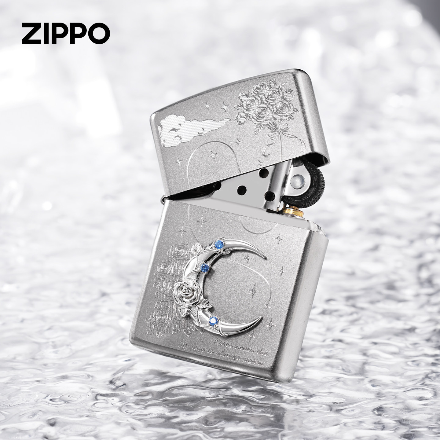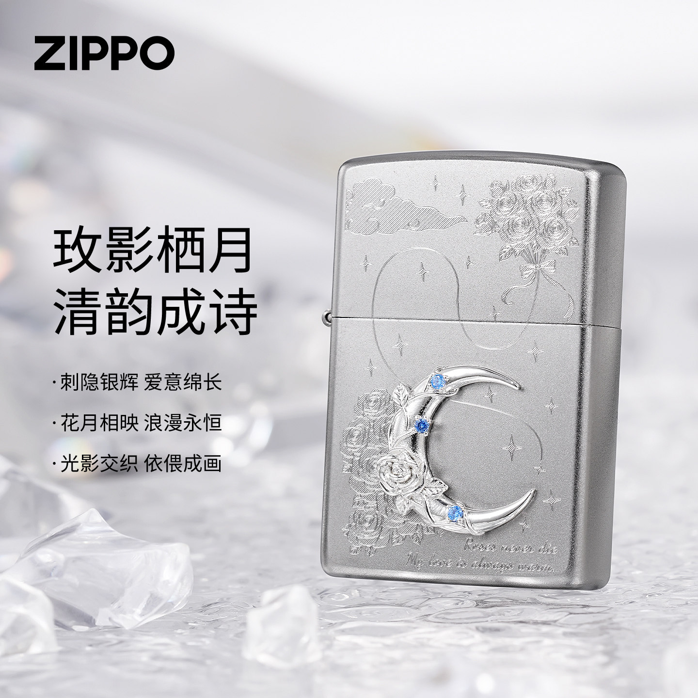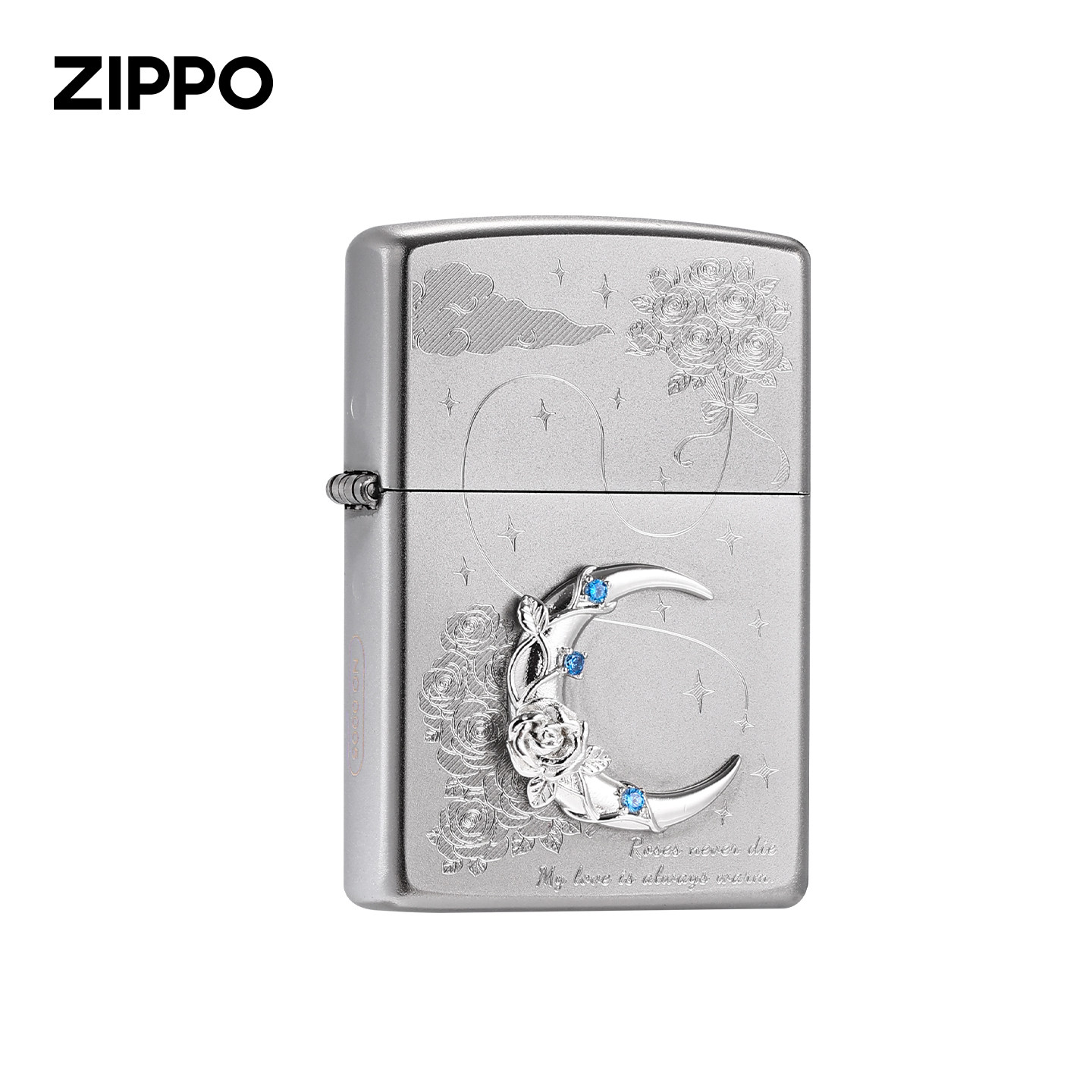 📚 zippo打火机月牙玫瑰贴章划刻官方正品煤油防风生日礼物送男士