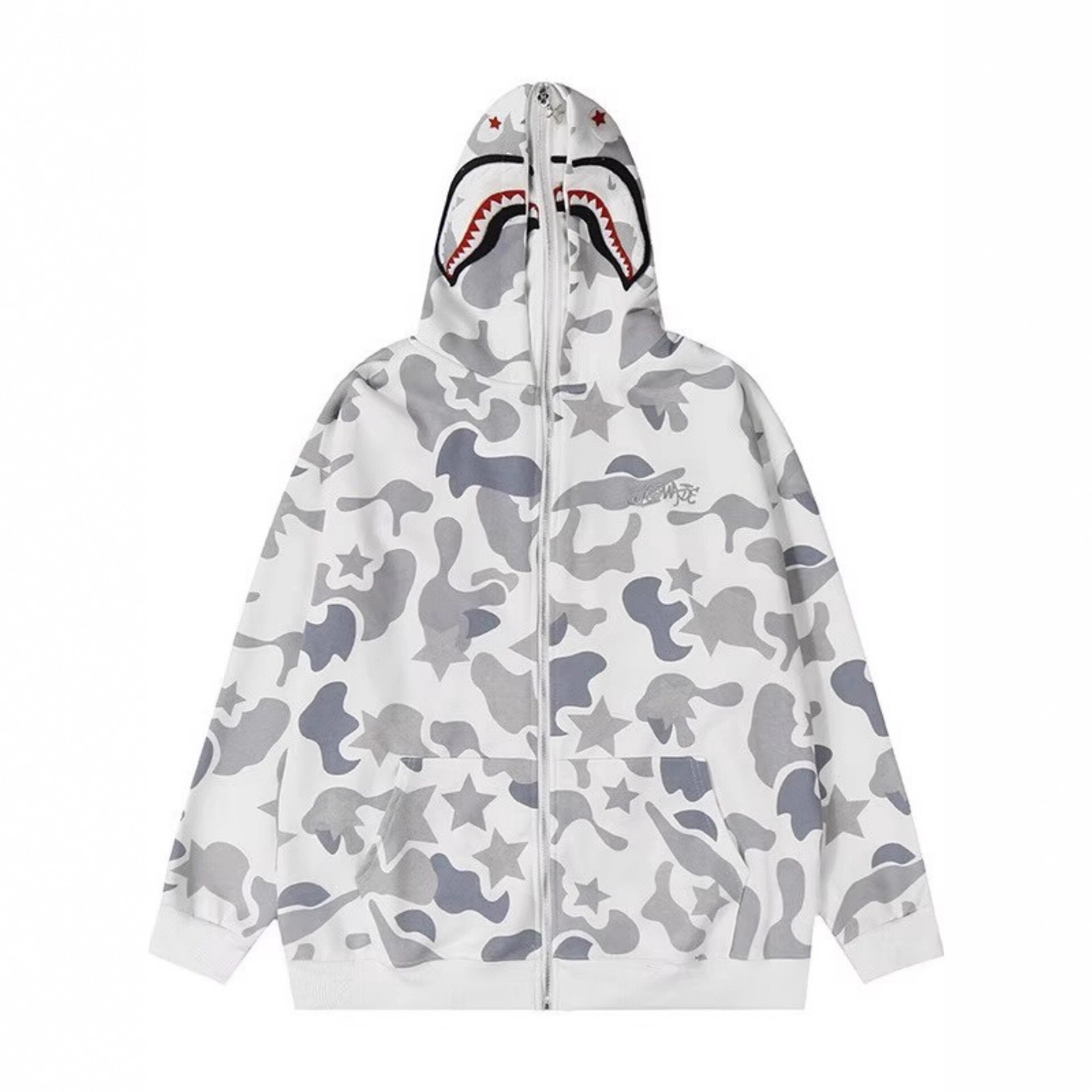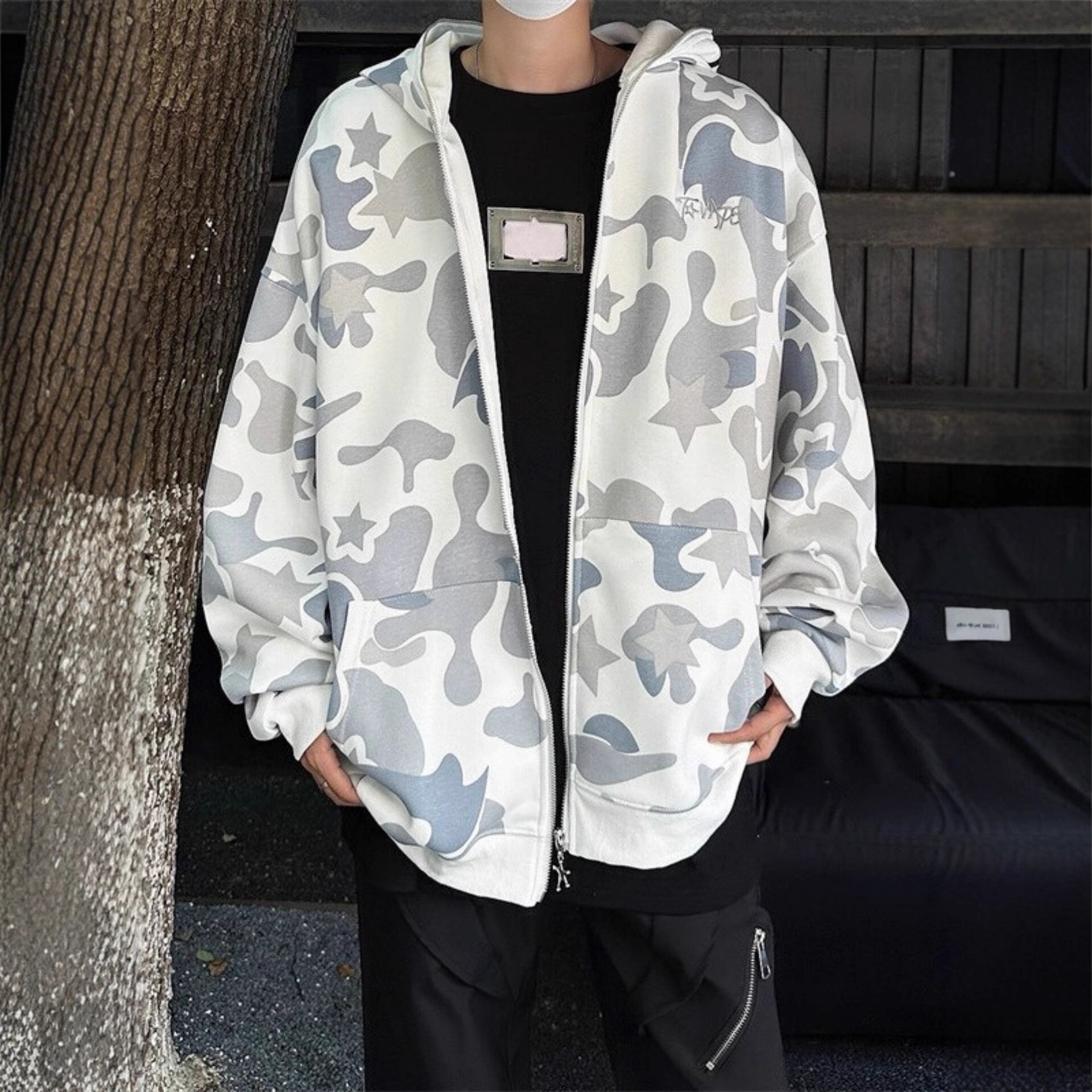 📚 双帽鲨鱼外套男女秋冬季美式高街开衫加绒卫衣设计感刺绣迷彩上衣