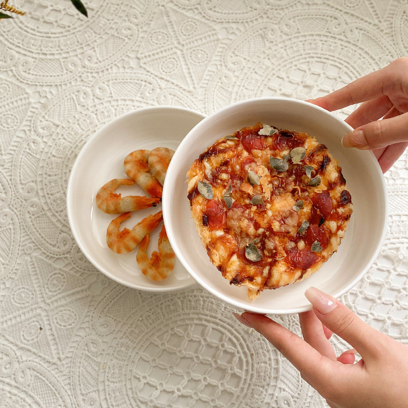 📚 电饭煲蒸盘家用骨瓷深菜盘空气炸锅圆烤盘耐高温陶瓷蒸蛋碗可微波