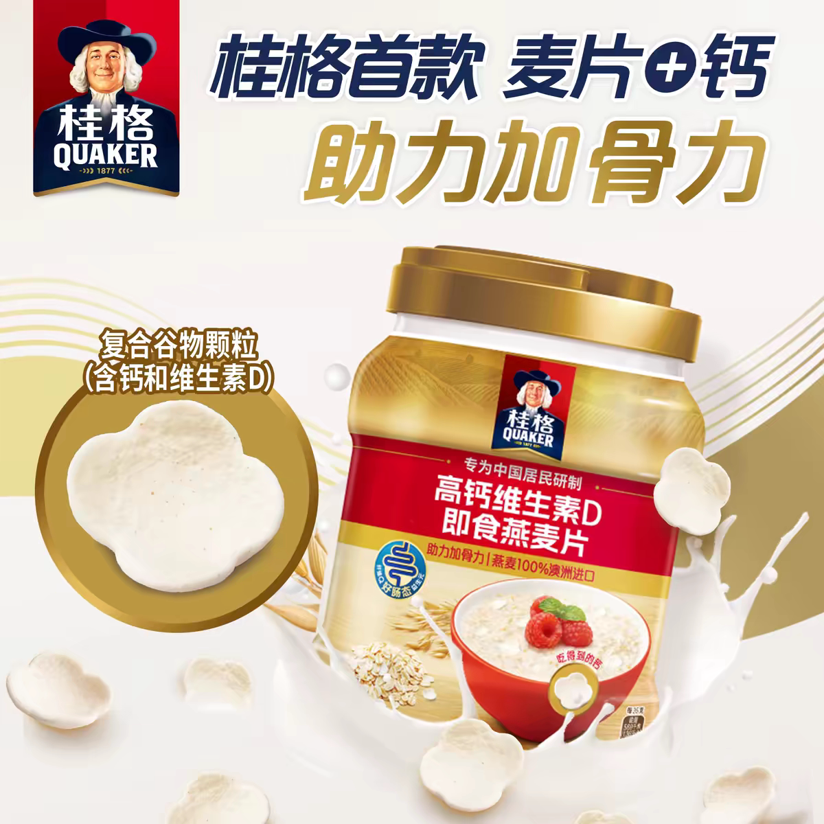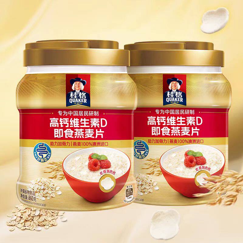 📚 桂格高钙维生素D即食燕麦片860g*2原味冲饮速食中秋礼盒新年送礼