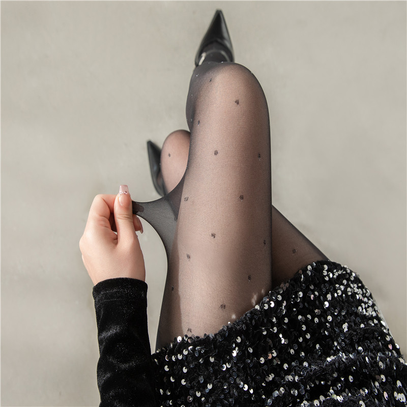 📚 灰色波点丝袜春夏季薄款透肉黑丝性感连裤袜JK白丝闪光银丝打底袜
