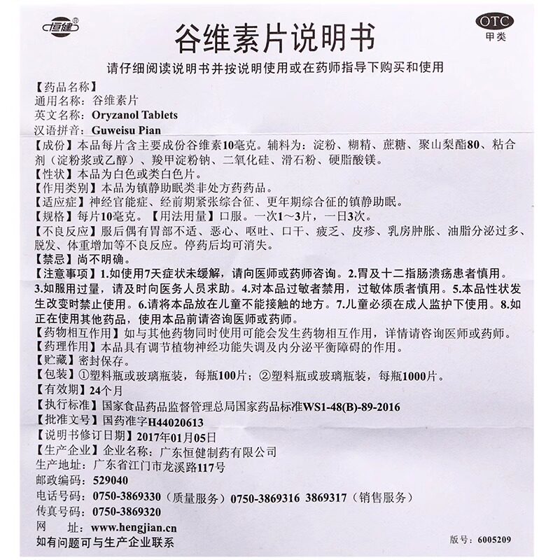 📚 恒健 谷维素片100片神经官能症经前期紧张综合征更年期综合征助眠