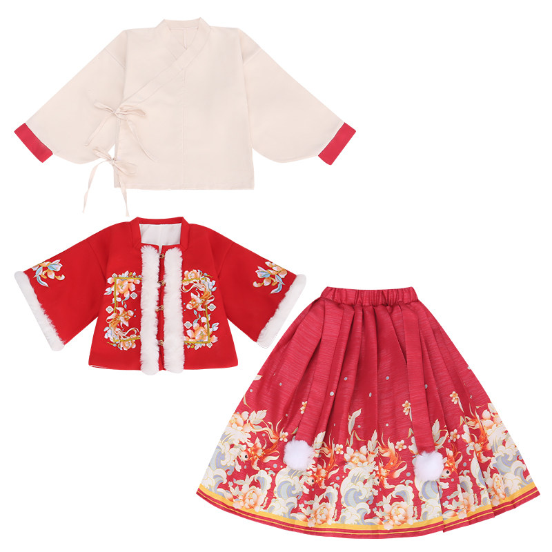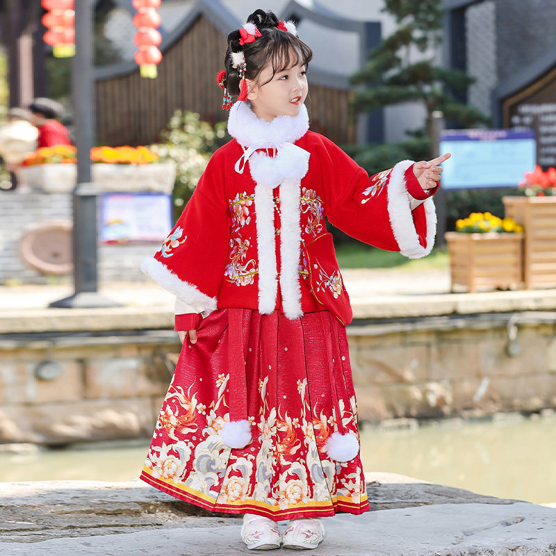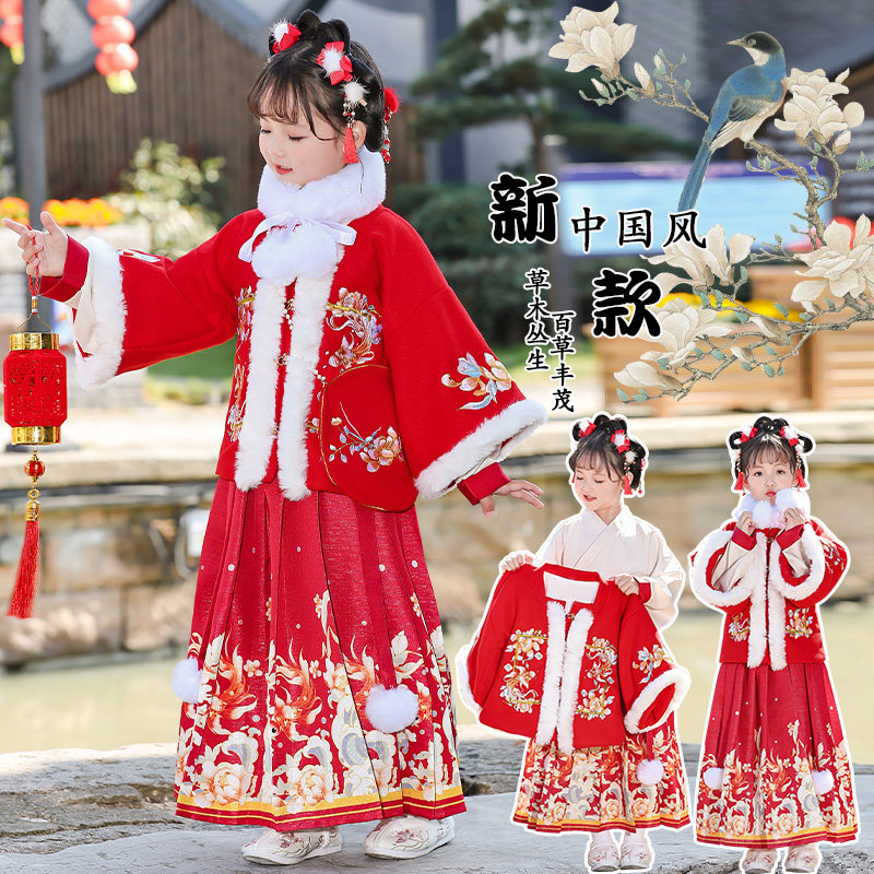 📚 女童马面裙秋冬装汉服儿童装2023新款冬季套装拜年服古风新年古装