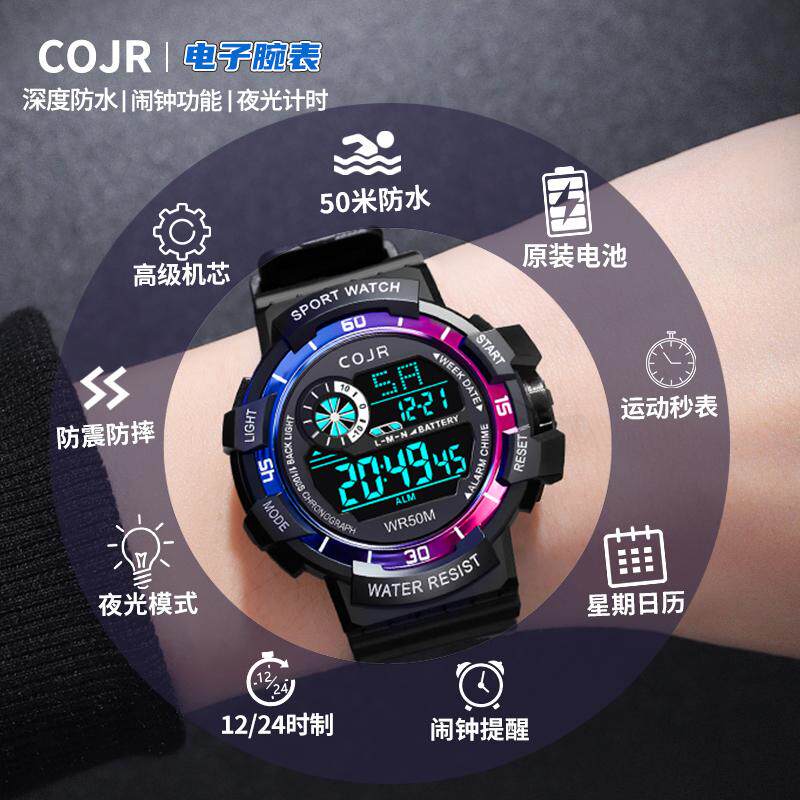 📚 青少年儿童电子手表男款初中学生高中男生多功能运动机械防水闹钟