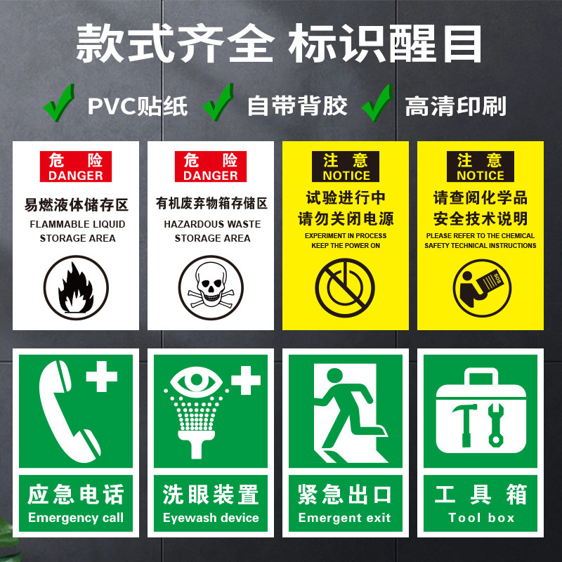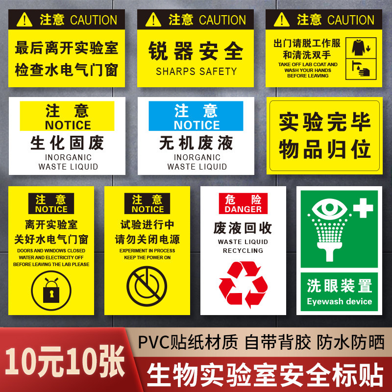 📚 安全化学实验室标识贴离开检查水电气门窗提示牌有机无机废液生化固废标志贴禁止易燃易爆物警告牌定制