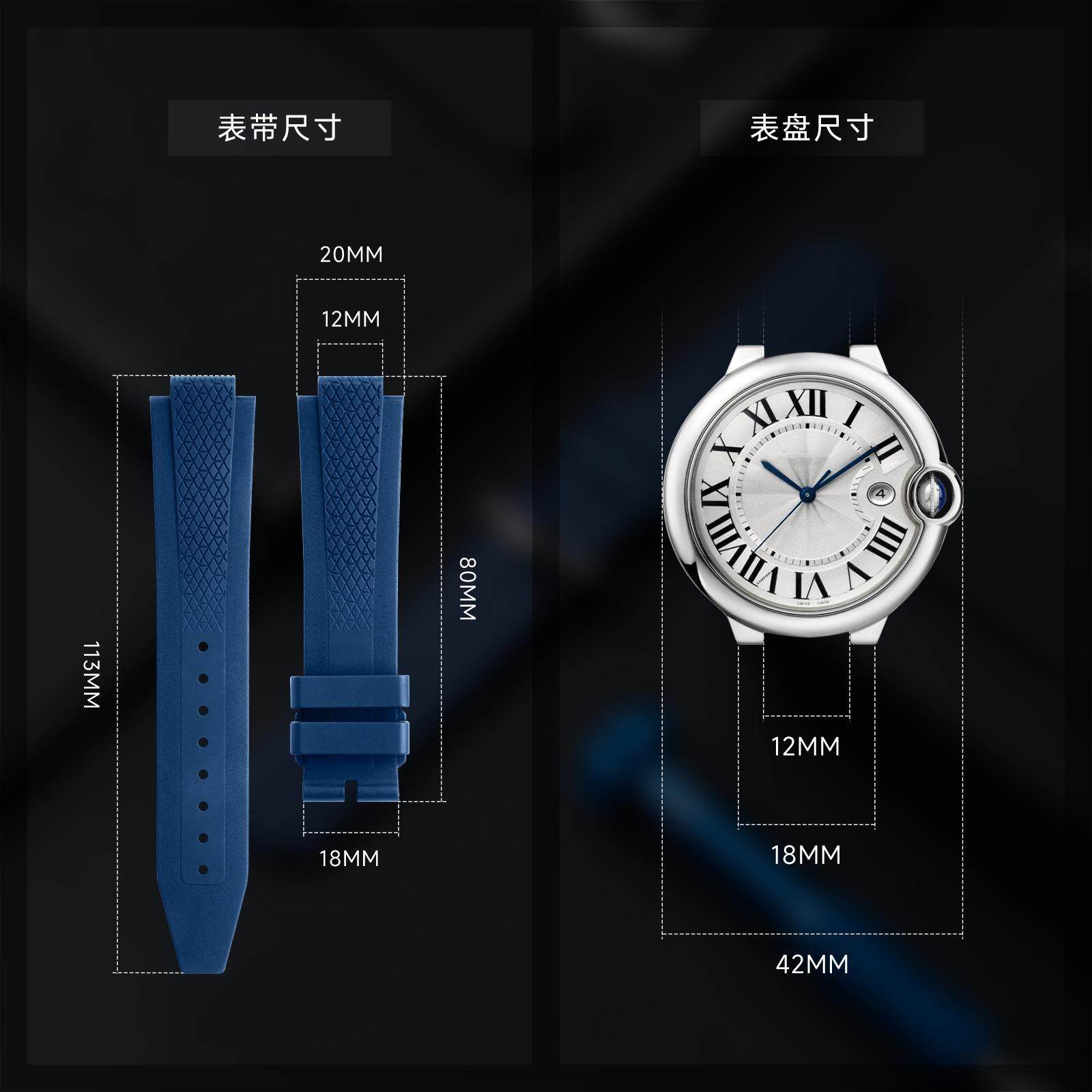 📚 适配42mm卡地亚蓝气球手表带原装款氟橡胶男款凸口20X12mm黑武士
