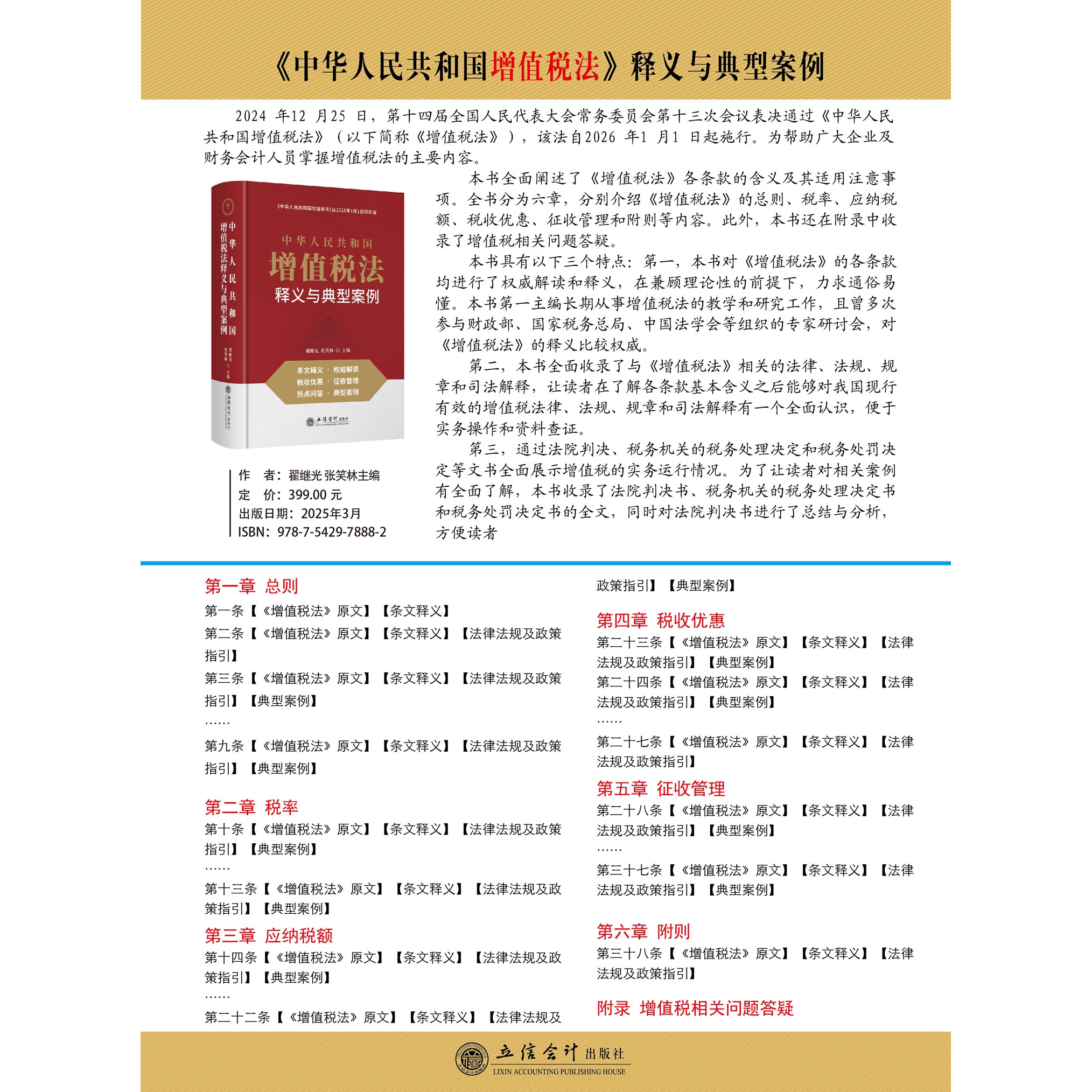 📚 2025年版中华人民共和国增值税法释义与典型案例 立信会计出版社正版增值税原文条文释义法律法规与政策指引 税率税收优惠征收管理