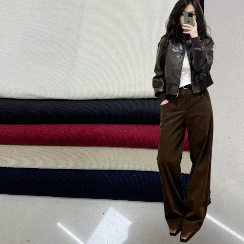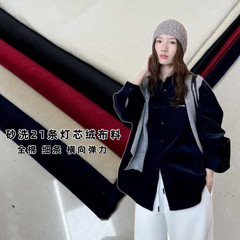 📚 春秋21条超细灯芯绒布料全棉砂洗弹力薄条纹衬衣裙套装裤子面料