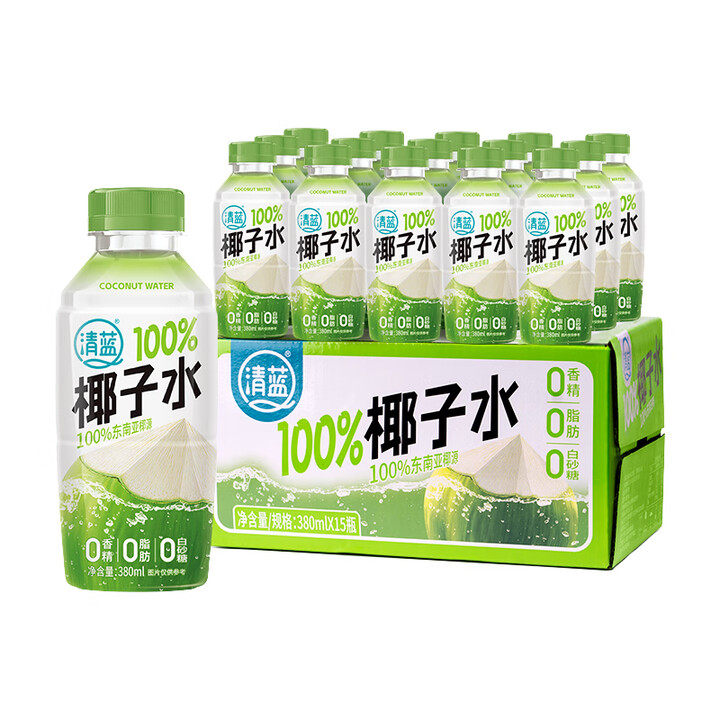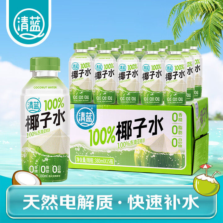 📚 清蓝 100%椰子水380ml*15瓶富含天然电解质椰青水0脂0添加NFC果汁