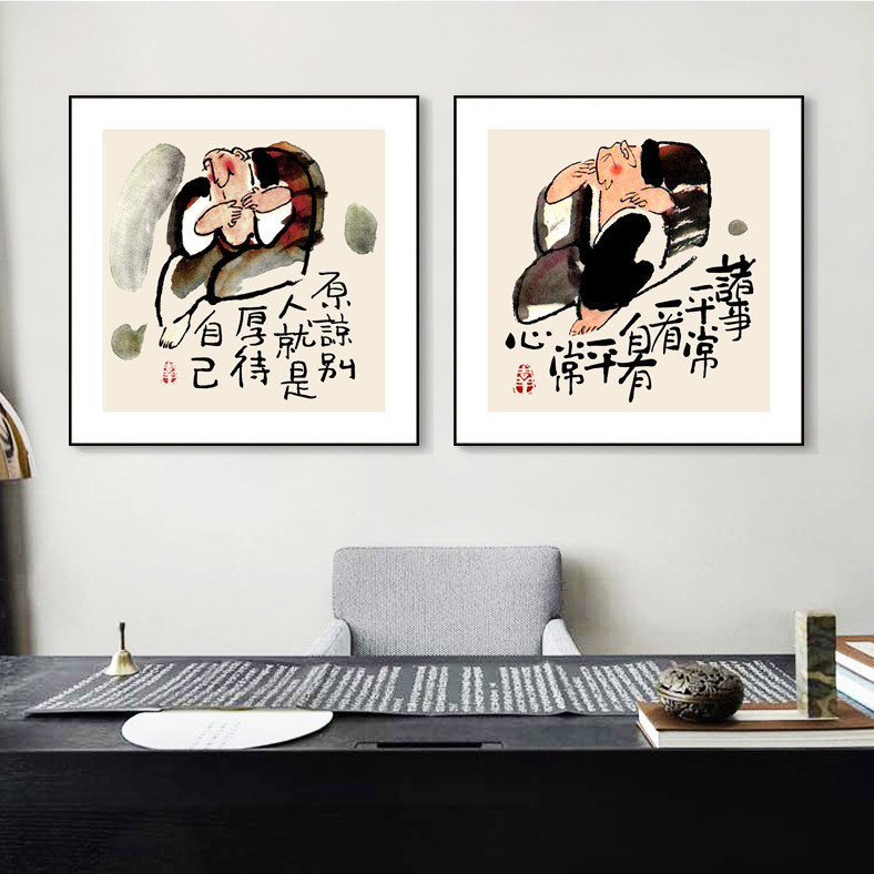 📚 平常心禅意挂画 书房卧室装饰画抽象壁画 办公室励志墙画茶室字画