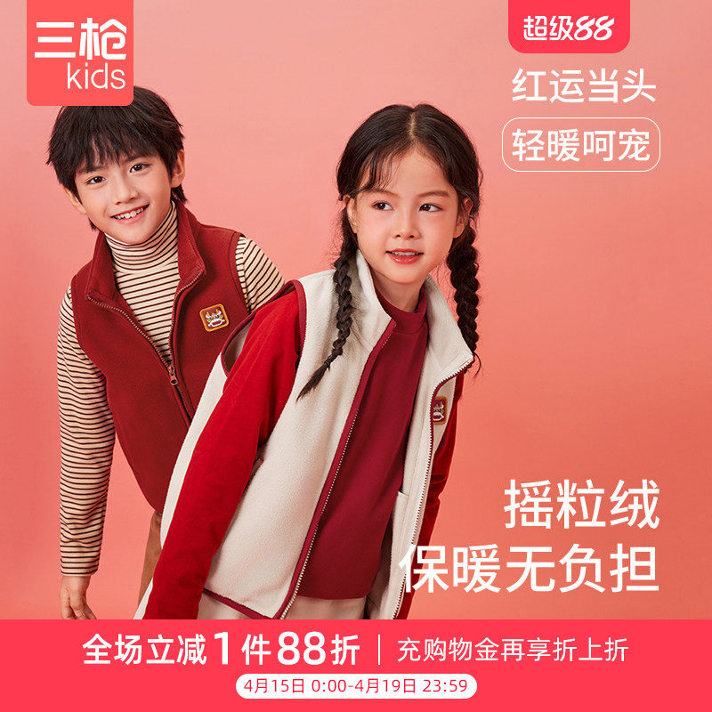 📚 三枪儿童外穿马甲男童家居服女孩马甲保暖吉庆摇粒绒青少年马甲