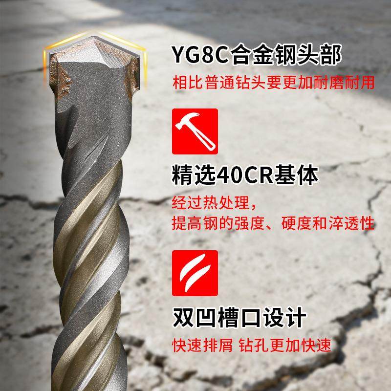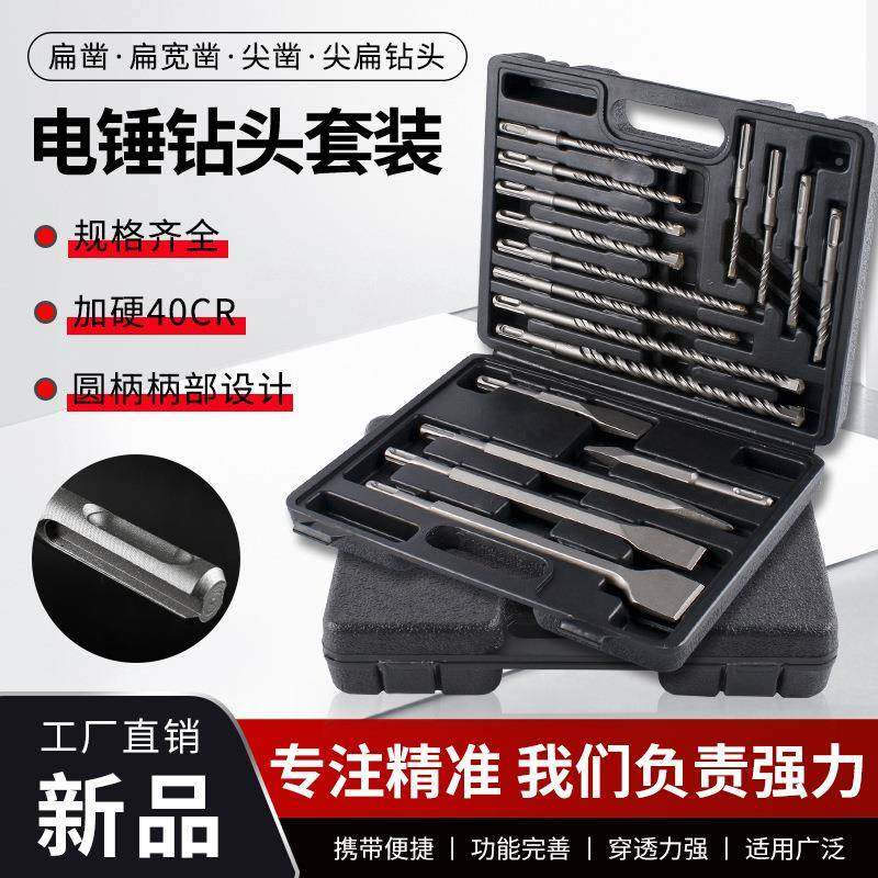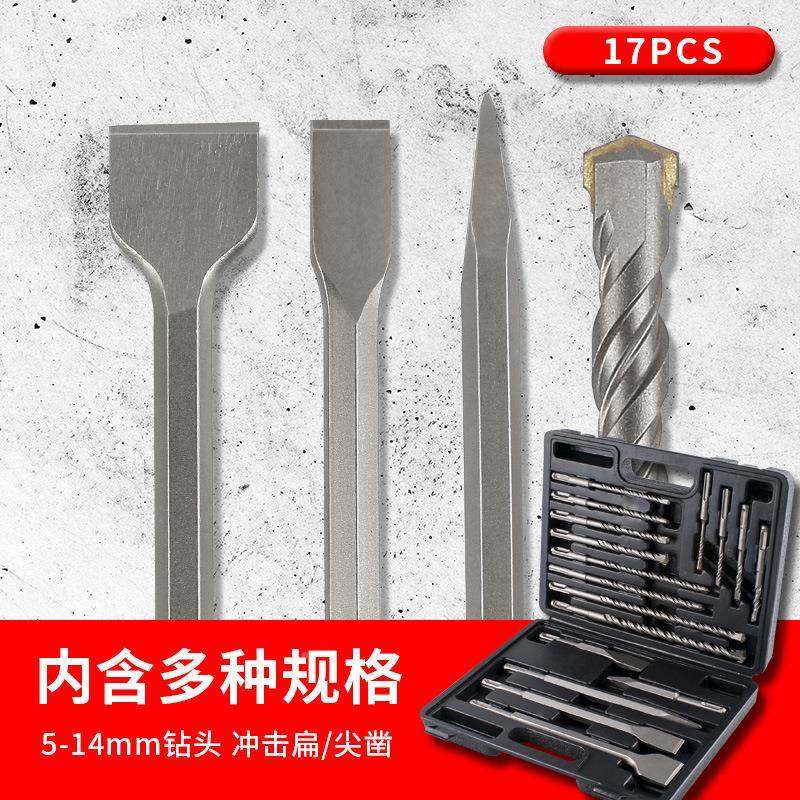 📚 爆款IOA7件圆柄二坑二钻槽一字冲击1电锤凿子套装打头洞钻孔凿墙