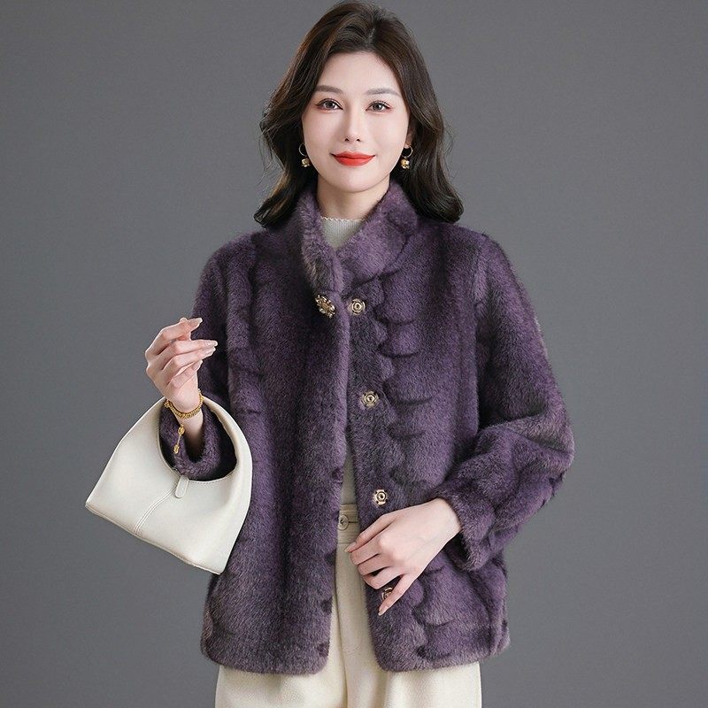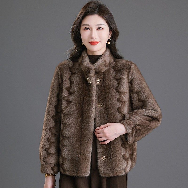 📚 2025秋冬时尚海宁皮草外套女短款小个子仿水貂毛皮毛一体上衣保暖