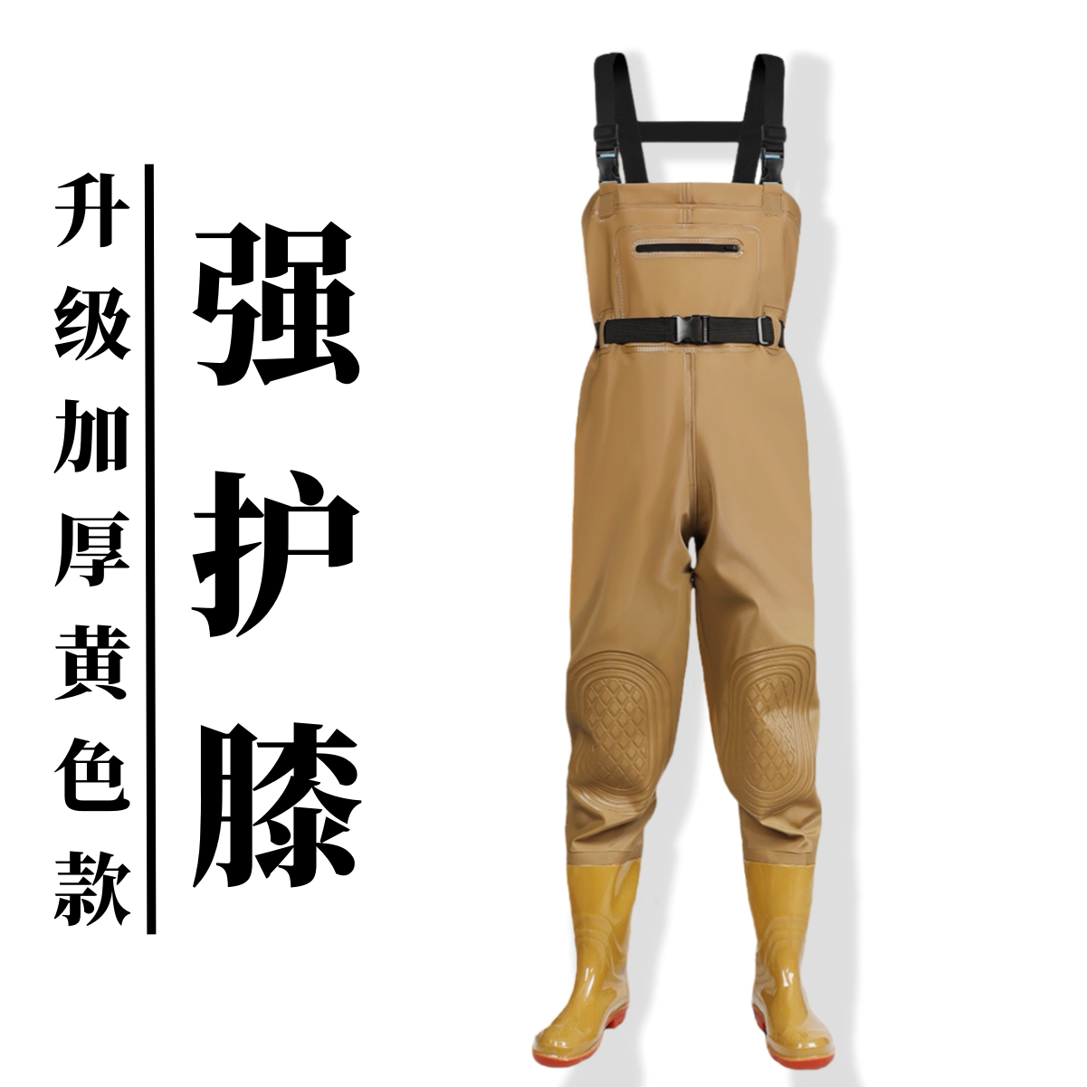 📚 下水裤加厚全身防水连体半身加厚雨裤带雨鞋一体男款水库捕抓鱼裤
