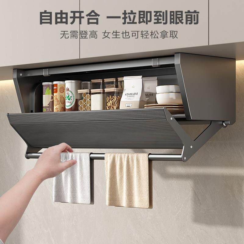 📚 厨房吊柜下置物架下拉式整体橱柜升降多功能调味罐架壁挂折叠调味