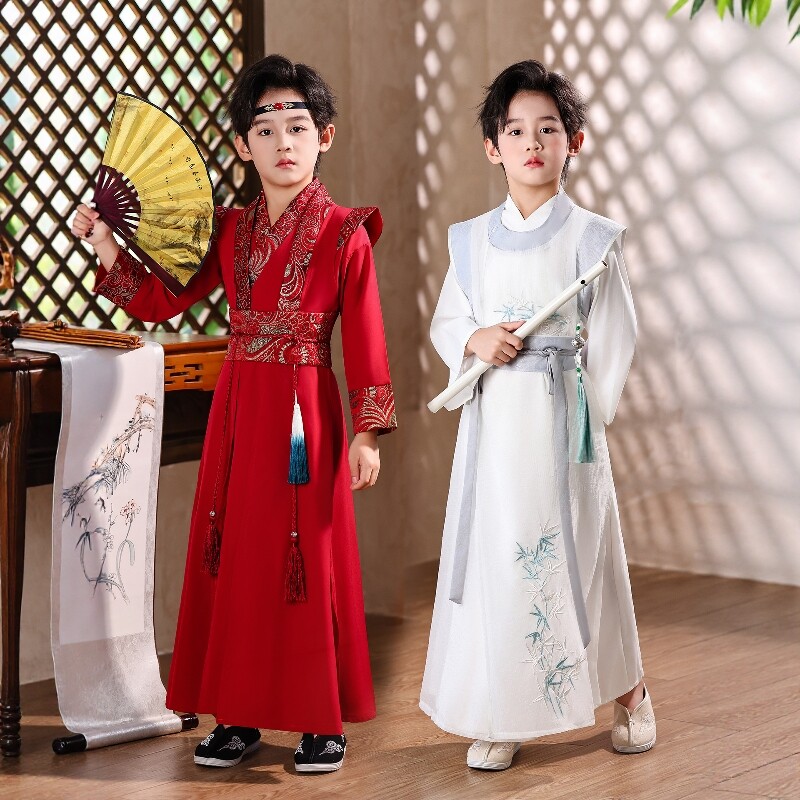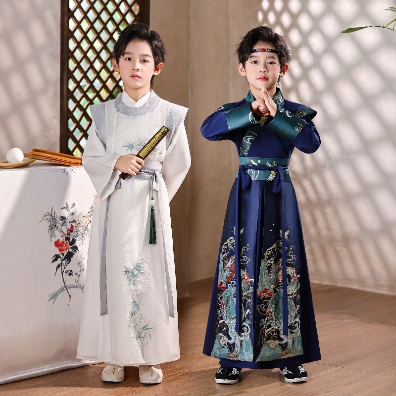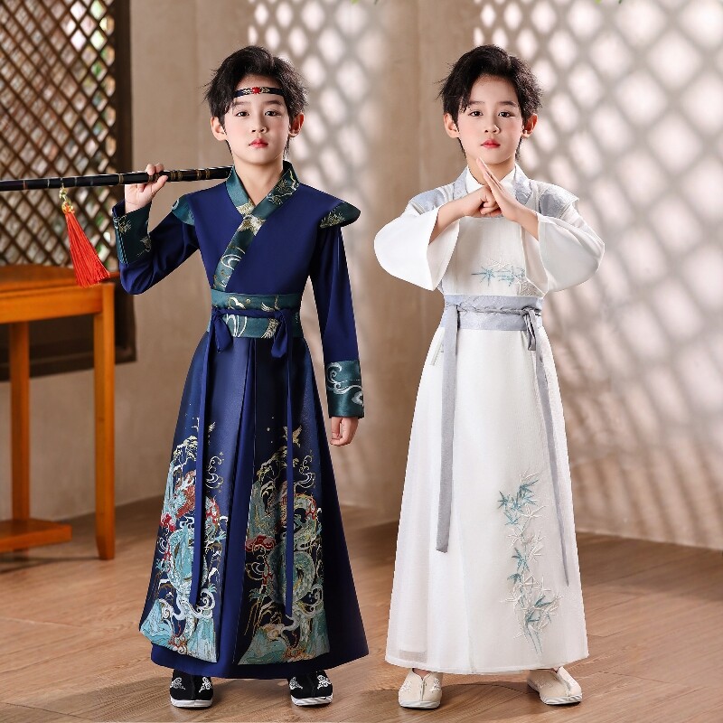 📚 男童汉服套装武侠风中大童古装演出服男孩古风春秋款唐装日常可穿