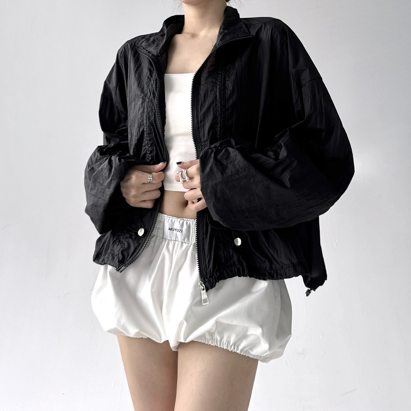 📚 2025夏季新款时尚防晒服薄款立领拉链抽绳亮色防晒衣短外套女上衣