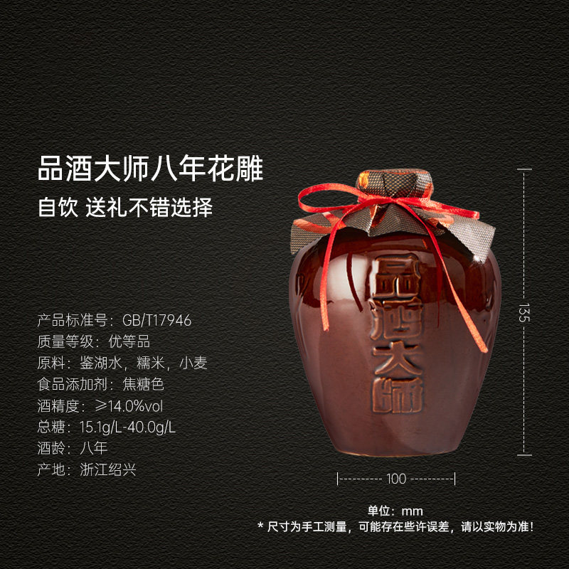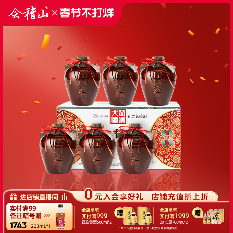 📚 会稽山黄酒 坛装绍兴正宗糯米老黄酒品酒大师500ml*6花雕酒八年陈