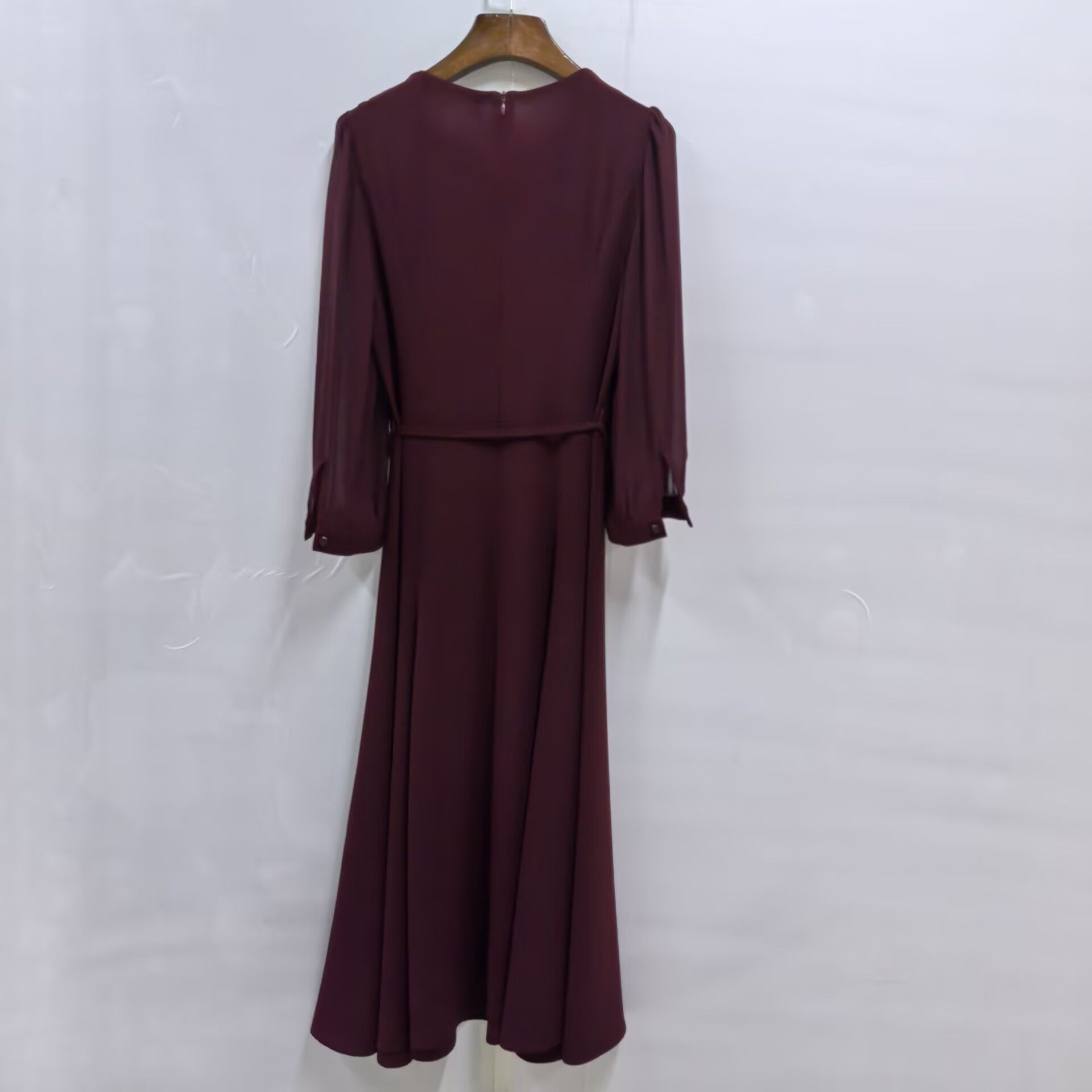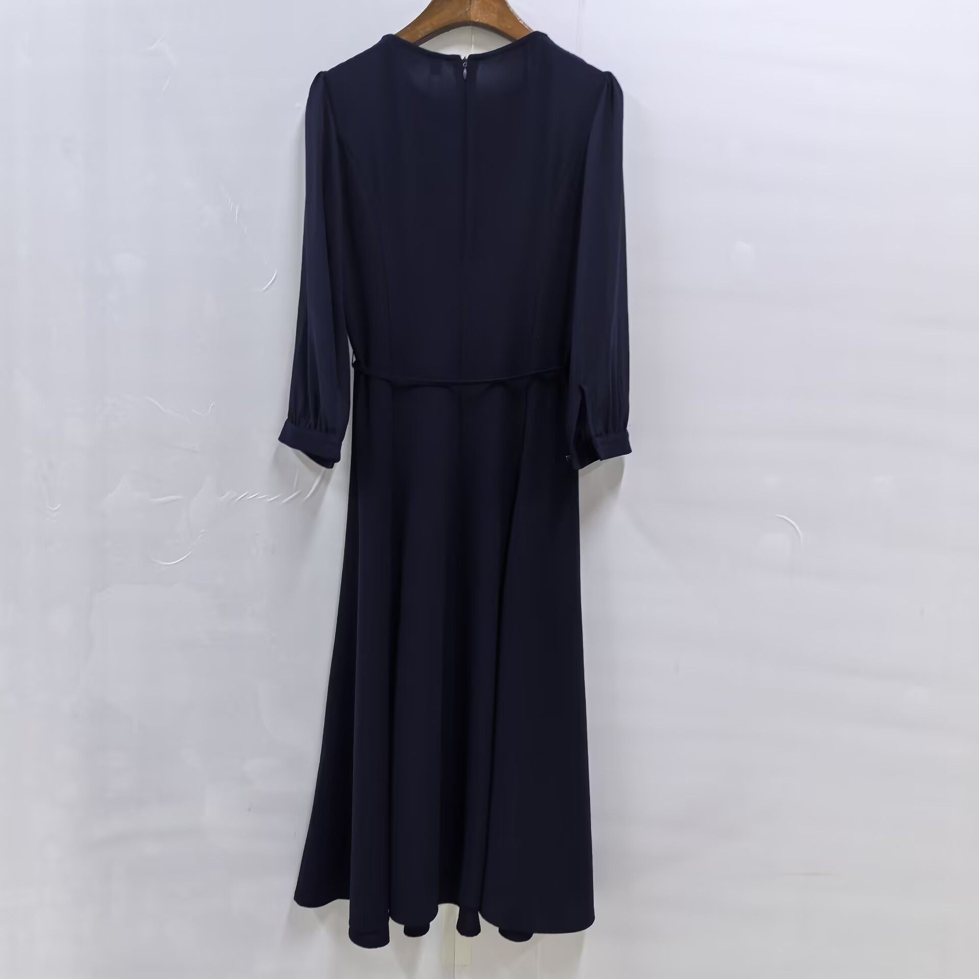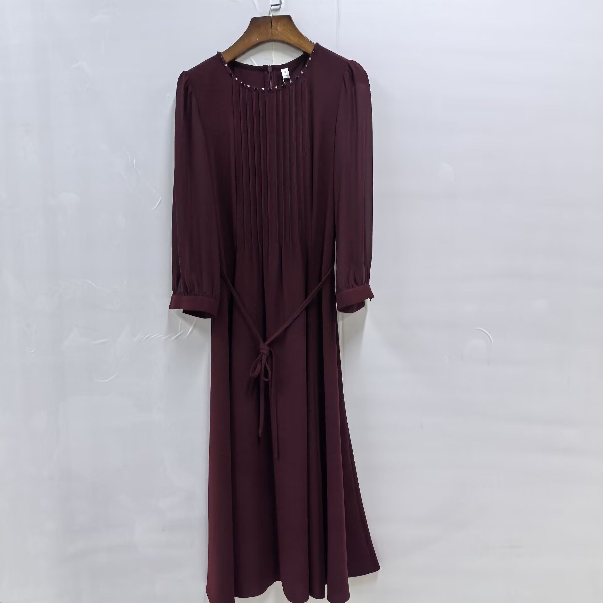 📚 莱瑞JR8105时尚优雅圆领气质皱褶系带长款连衣裙春装2026女式新款