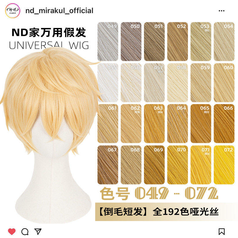 📚 ND家毛娘万用倒毛短发049-072色cos假发亚麻金黄棕粉橙橘蛋白反翘