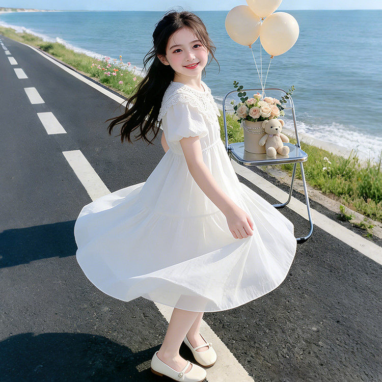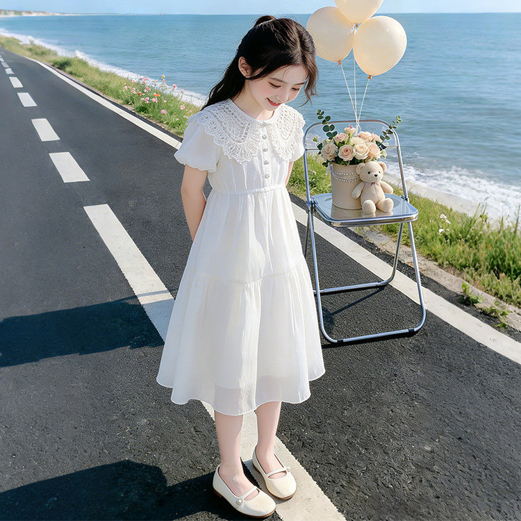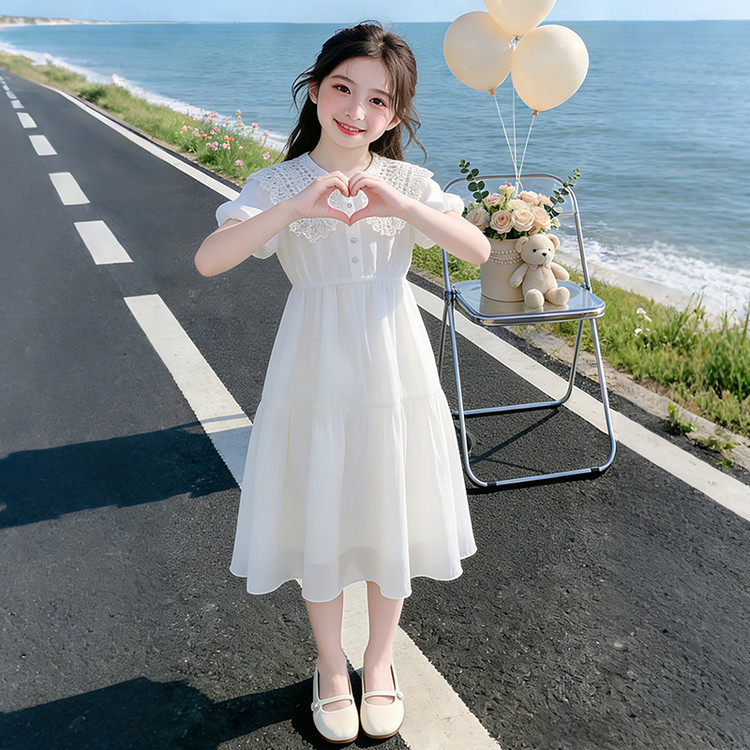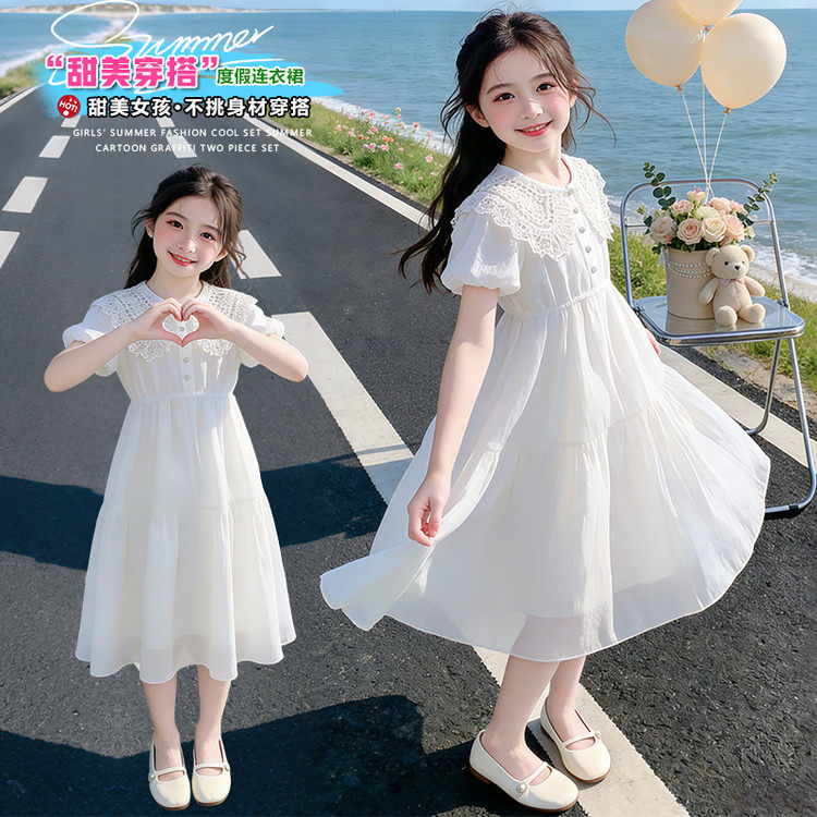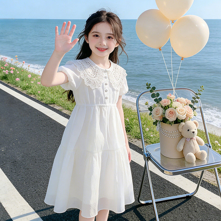 📚 女童白色蕾丝连衣裙2026春夏新款洋气公主裙儿童中大童休闲表演服