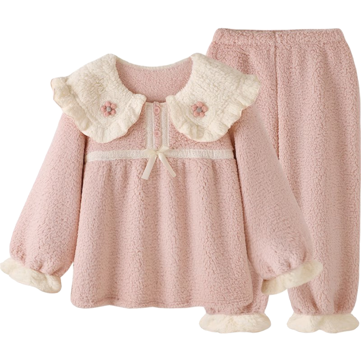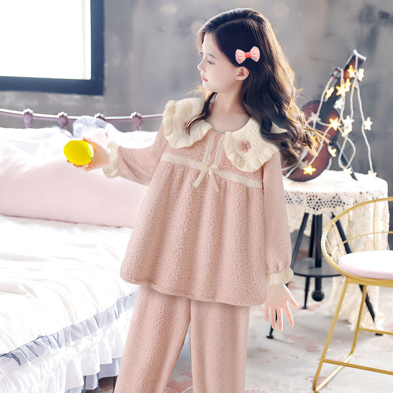 📚 女童日系甜美加厚珊瑚绒睡衣冬季长袖可外穿家居服套装可爱卡通