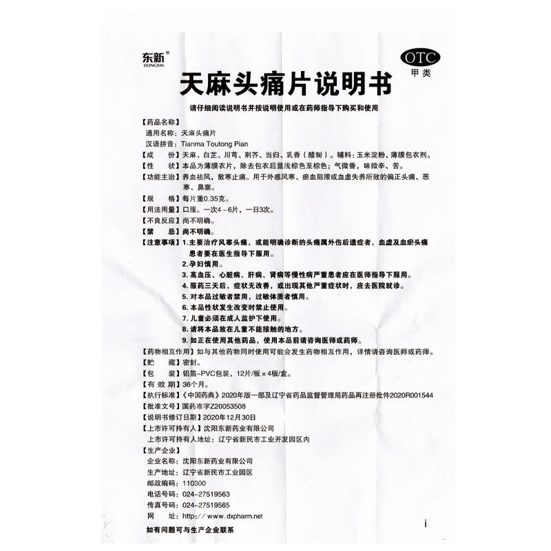 📚 东新 天麻头痛片0.35g*48片/盒 外感风寒瘀血阻滞血虚失养头痛GD
