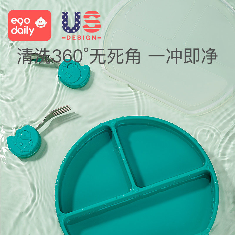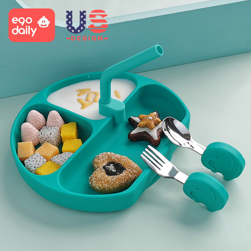 📚 宝宝餐盘儿童分格吸盘式婴儿学吃饭硅胶吸管碗卡通餐具辅食碗套装