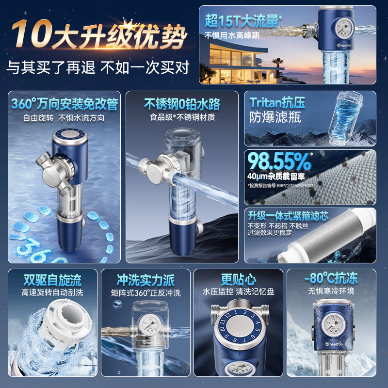 📚 惠尔顿前置过滤器家用超15T万向不锈钢自动清洗反冲洗P0038plus