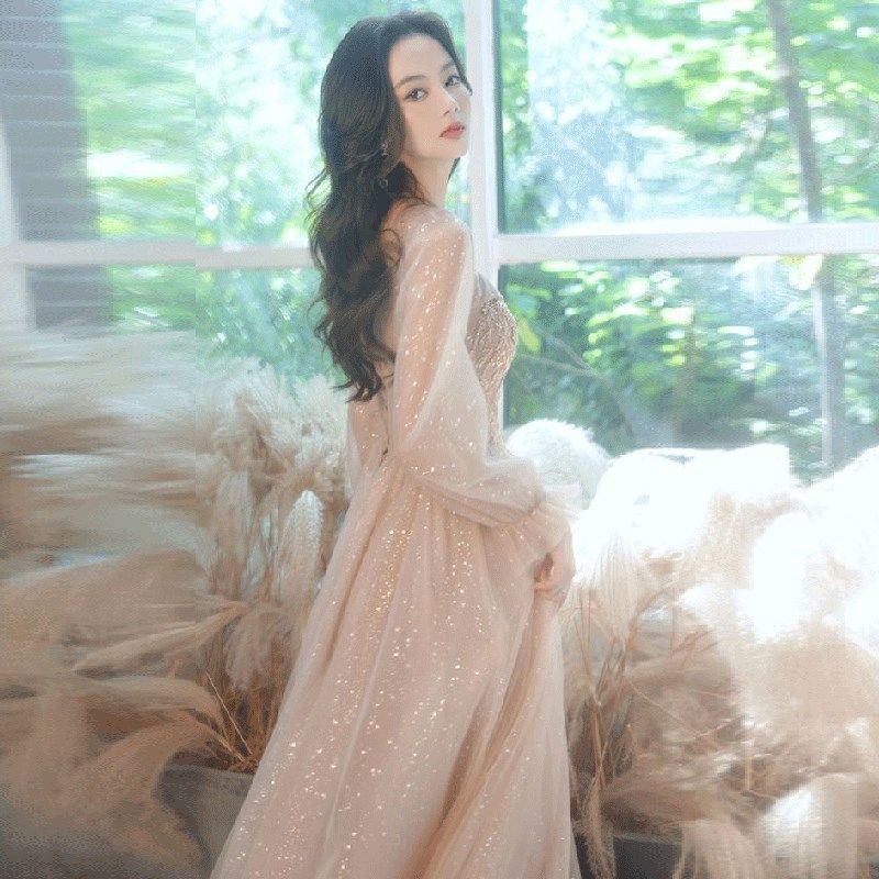 💥惊艳!香槟色长袖礼服裙,音乐生艺考年会生日宴的最佳选择🎉